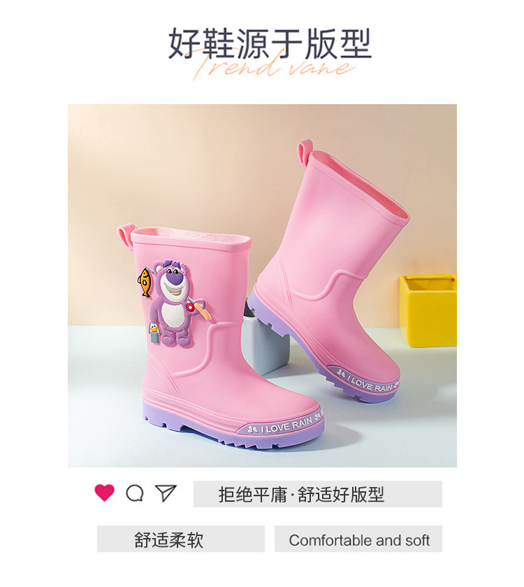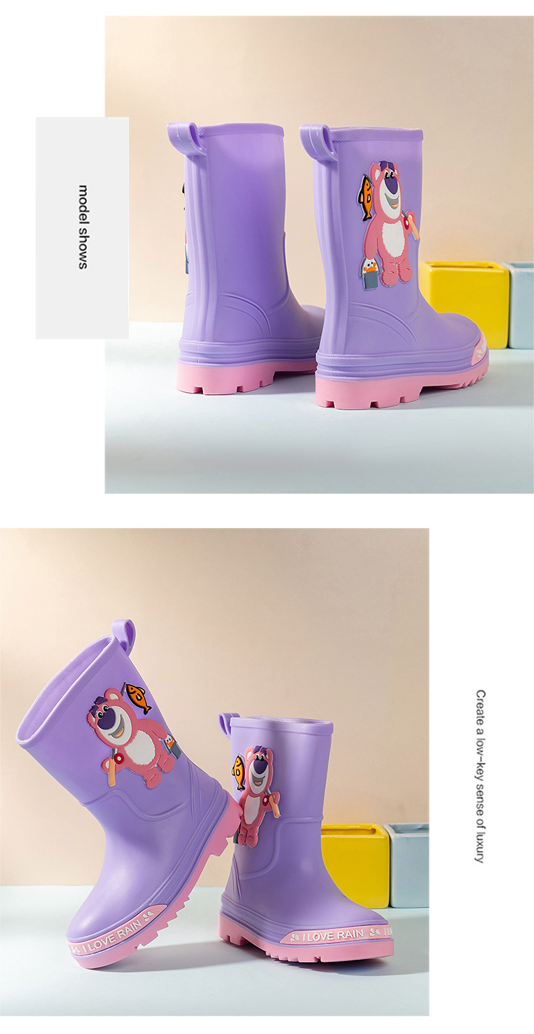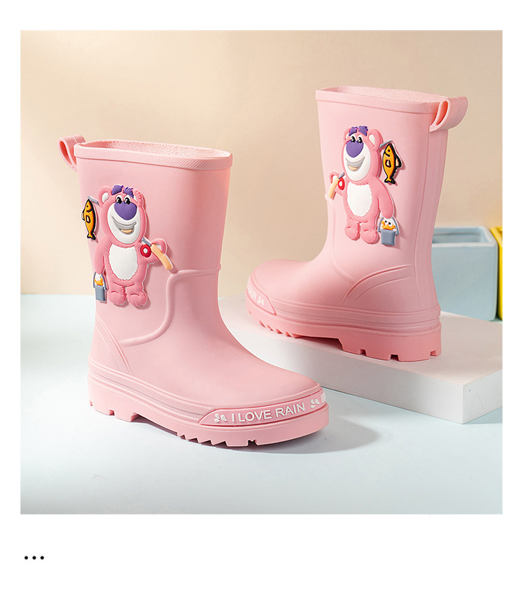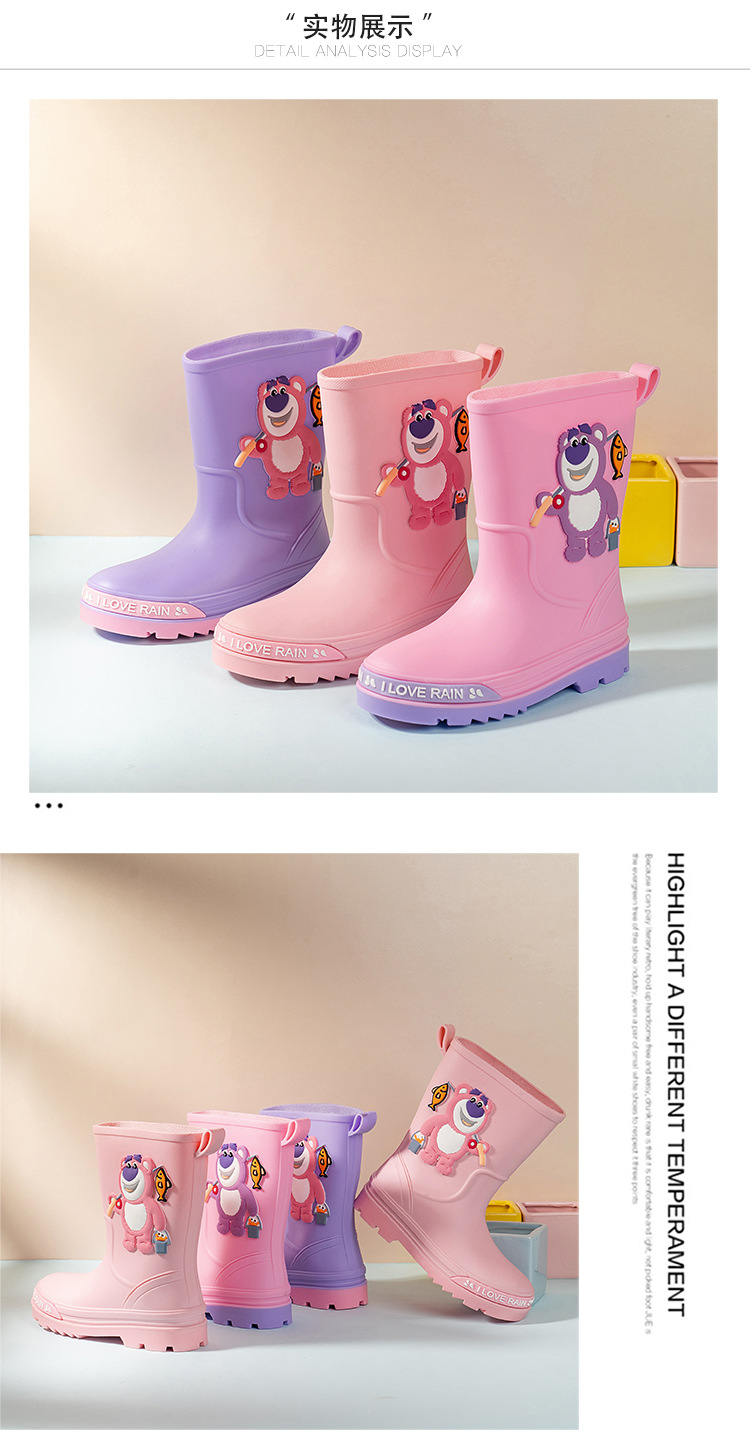2025 어린이 장화 만화 곰 귀여운 소녀 방수 장화 유아 어린이 미끄럼 방지 물 신발 학생 고무 신발스토어 가기