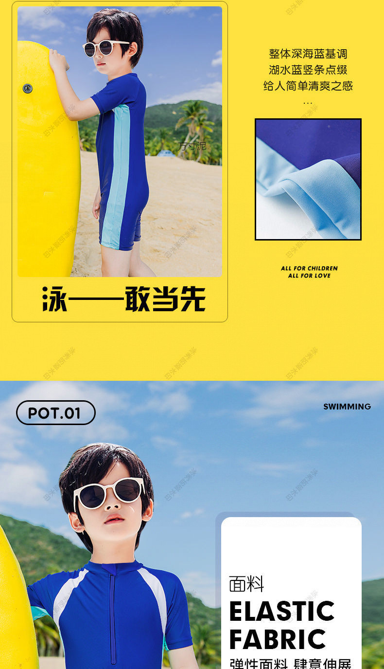 남성과 여성을 위한 아동용 수영복 스플릿 원피스 수영복, 소형, 중형 및 대형 소년 자외선 차단제 속건성 온천 스플릿 바지 정장 도매