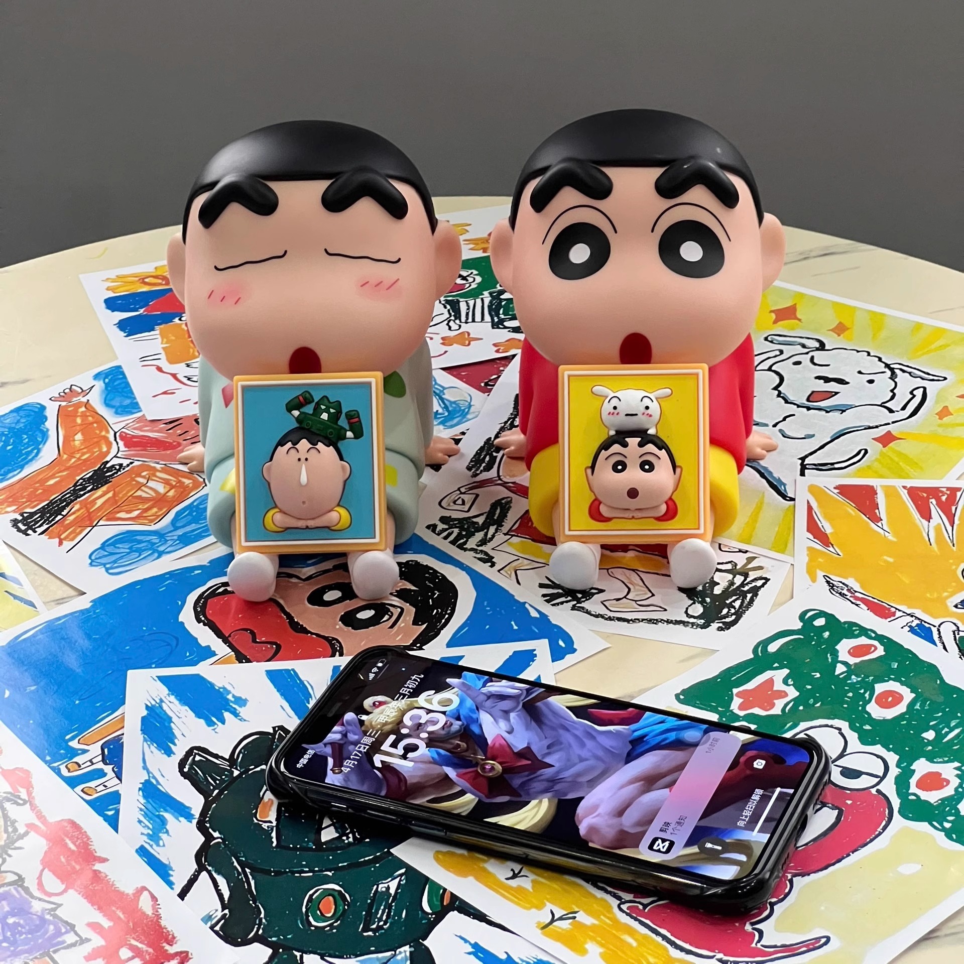 크레용 작은 새로운 휴대 전화 브래킷 게으른 휴대 전화 홀더 귀여운 데스크탑 장식품 손으로 만든 모델 인형 유행 놀이 선물