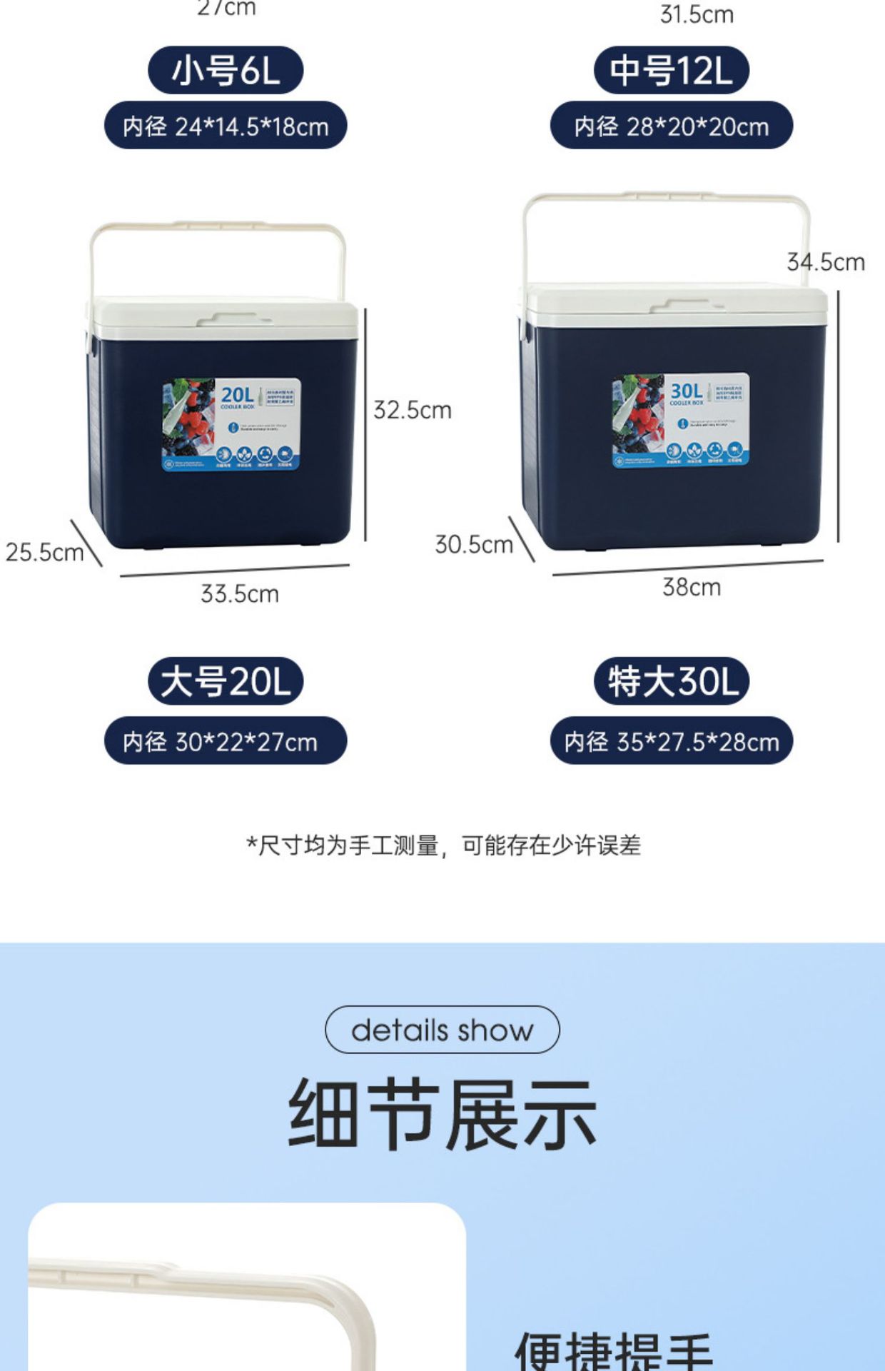 • 30L 파란색 단열 상자에는 얼음 결정 상자*2 + 얼음 주머니*10이 함께 제공됩니다.