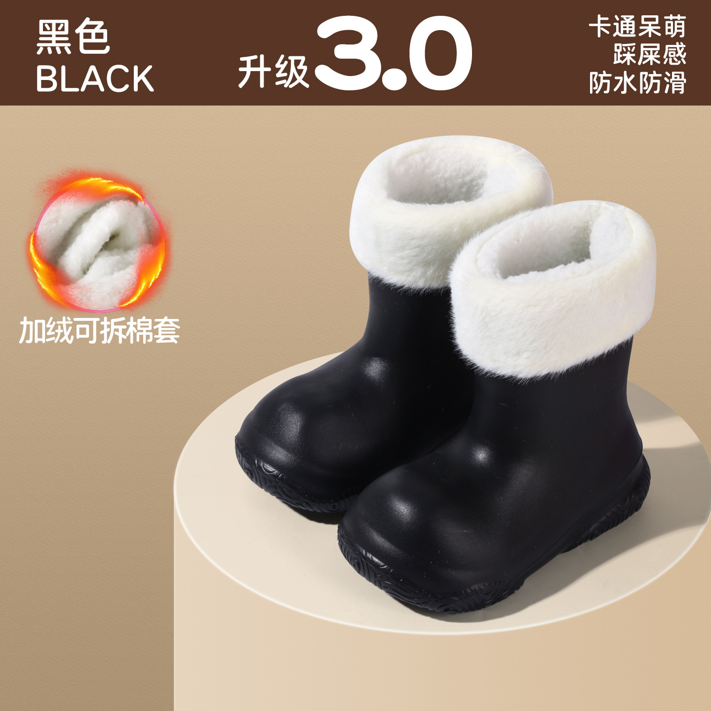 어린이 장화, 중소형 아동용 단색 EVA 아우터 방수, 미끄럼 방지, 부드러운 바닥과 면 따뜻한 종아리 중간 장화스토어 가기