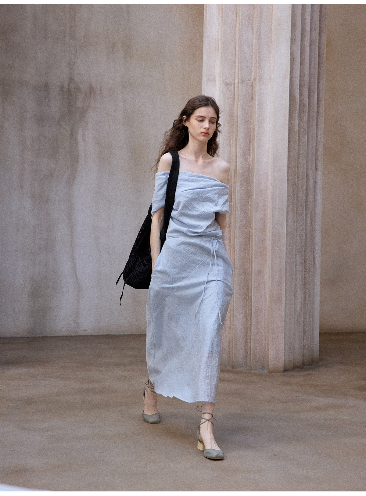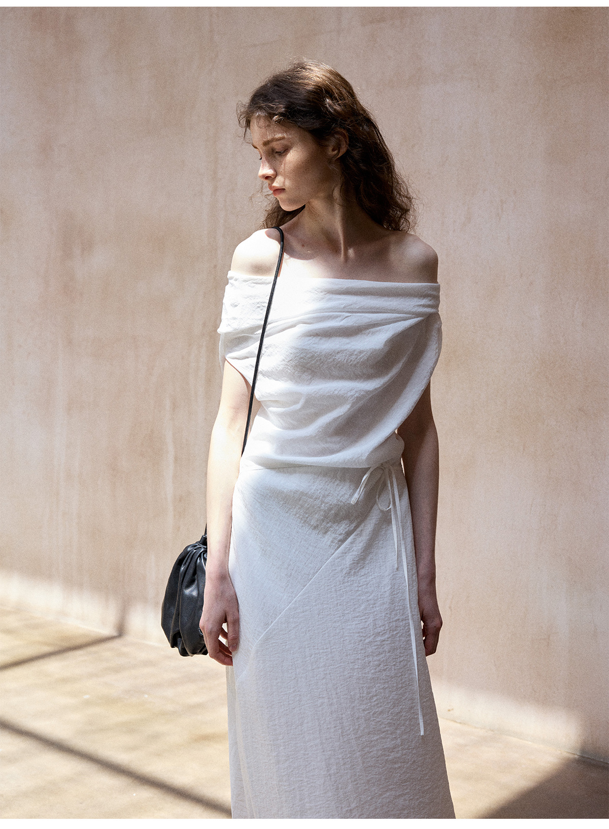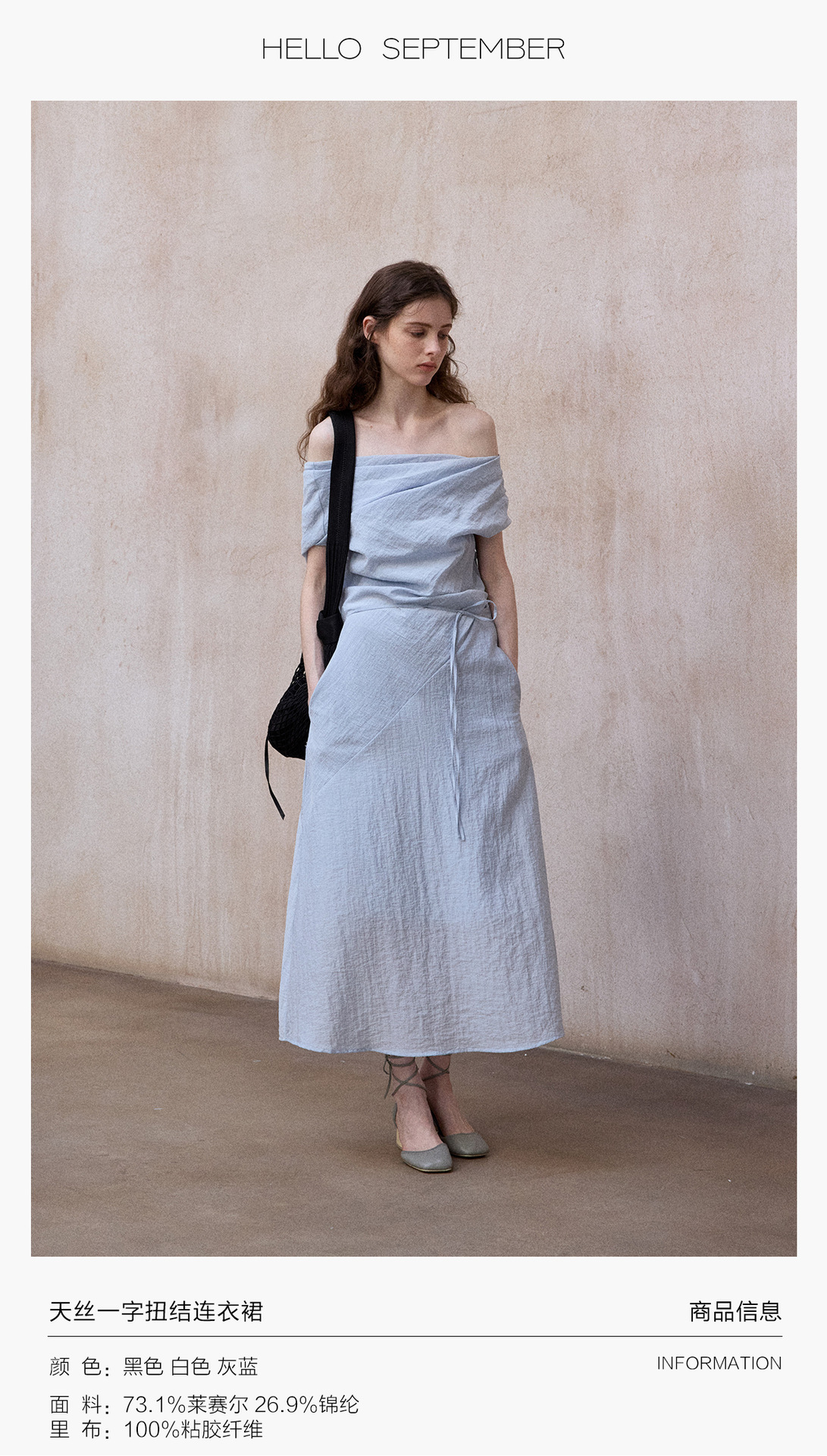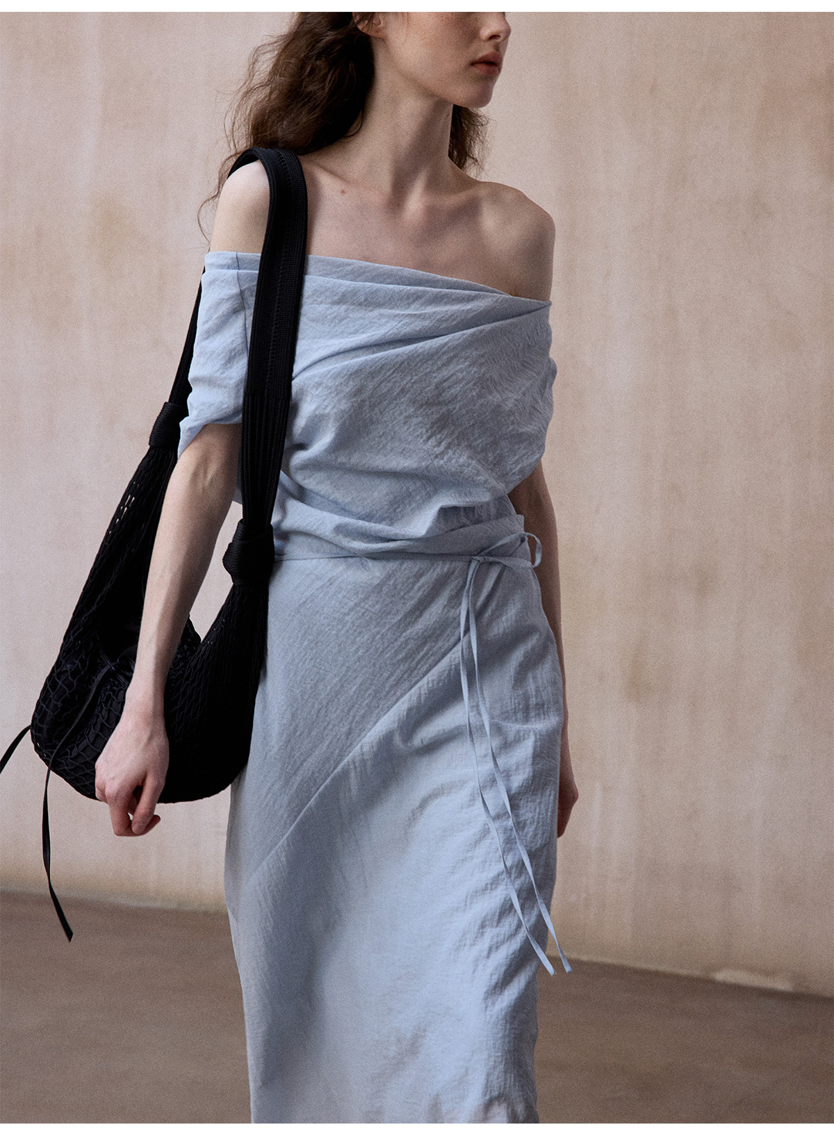 [테이블을 알아보세요] 여성용 여름 부드럽고 시원한 텐셀 트위스트 원숄더 슬리밍 튜브탑 드레스 M8849