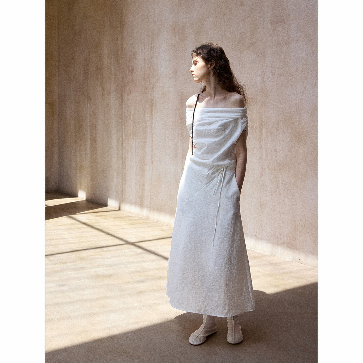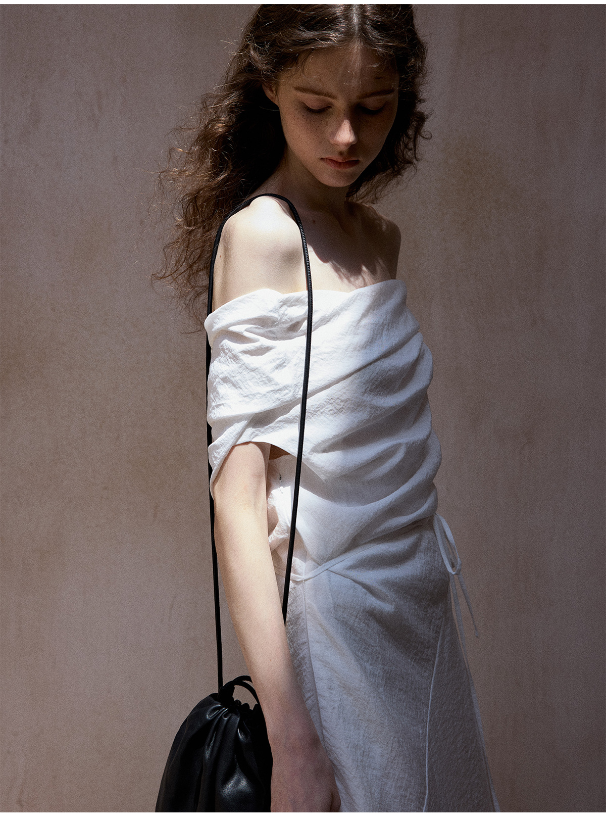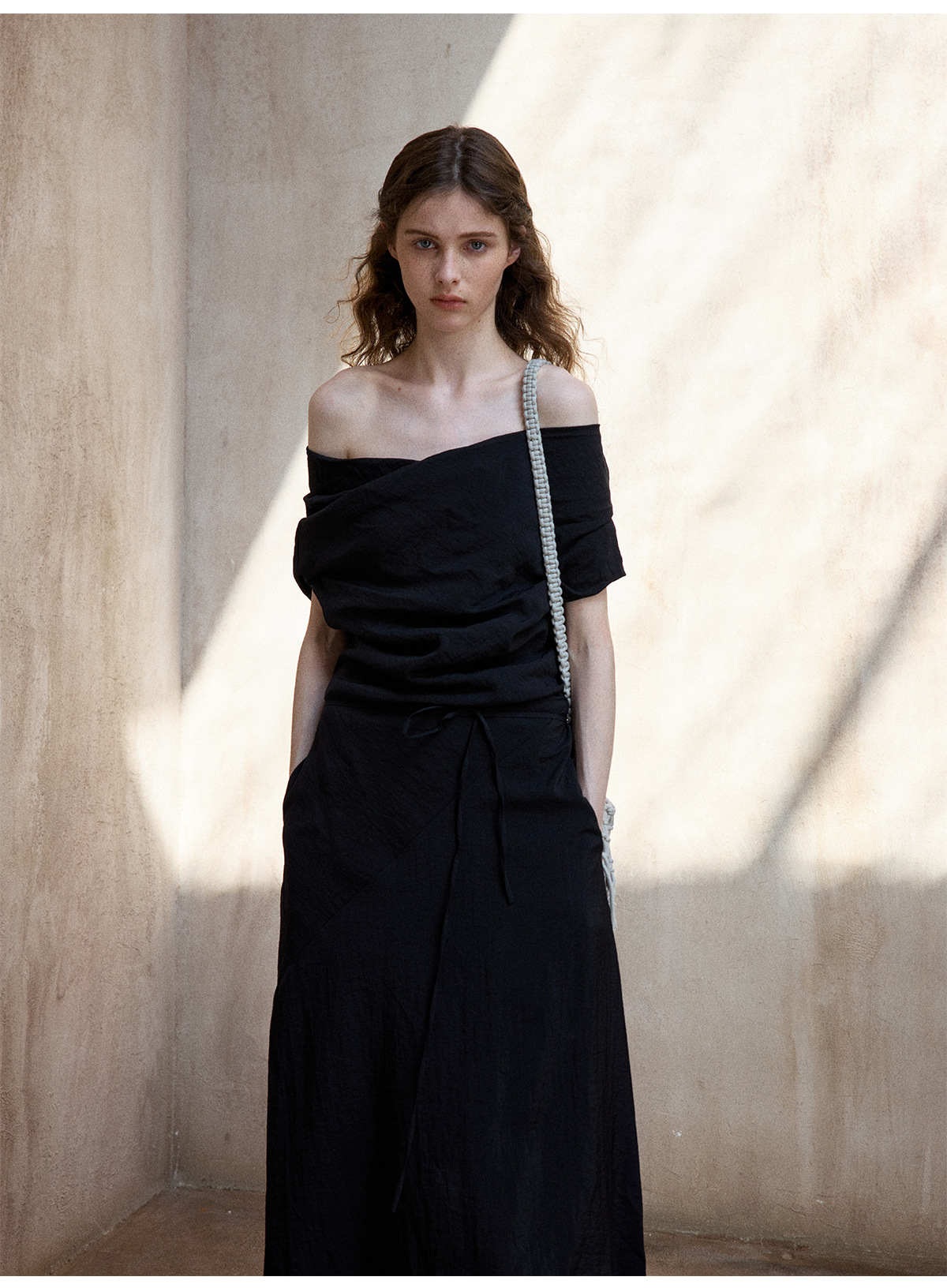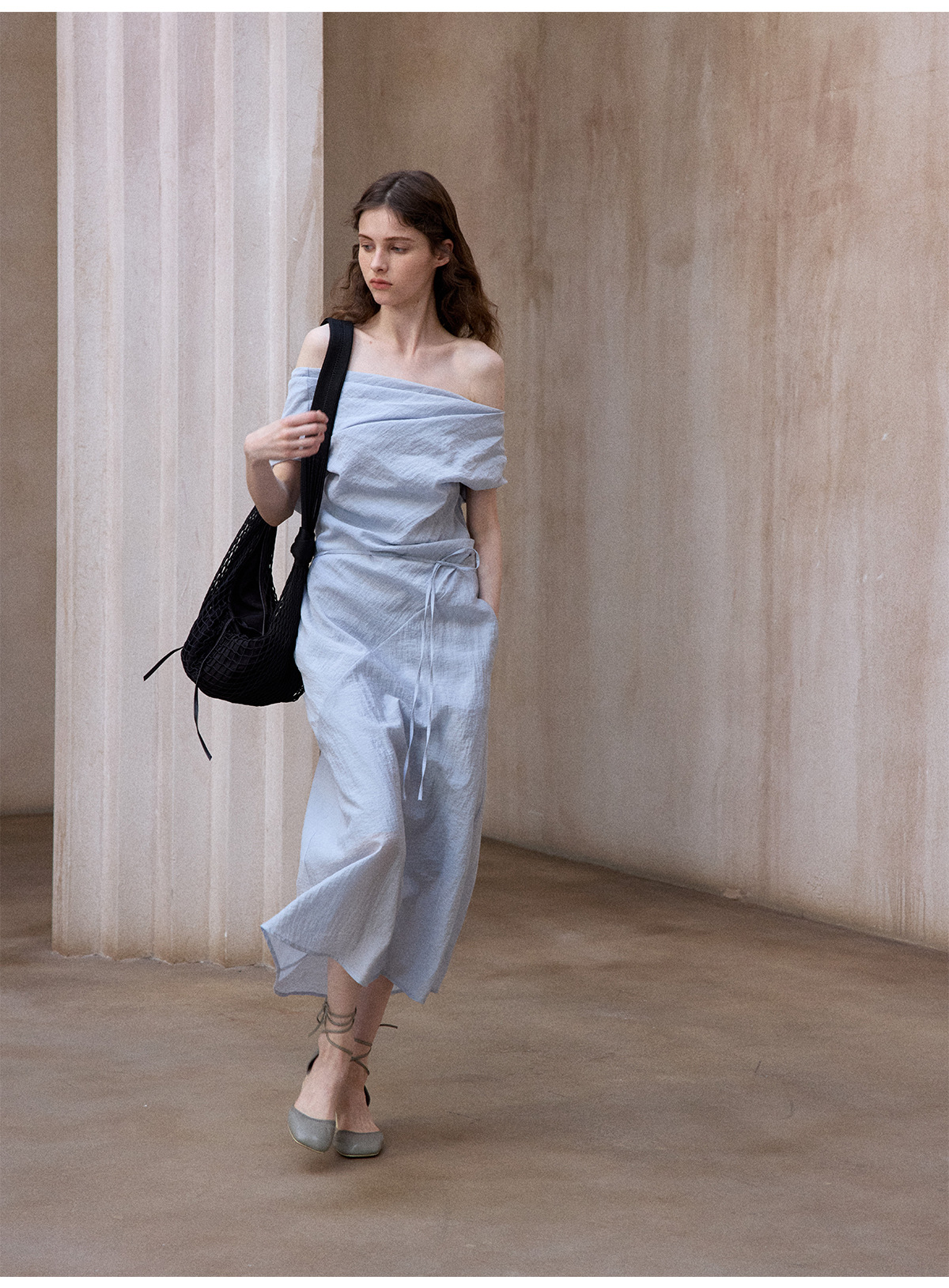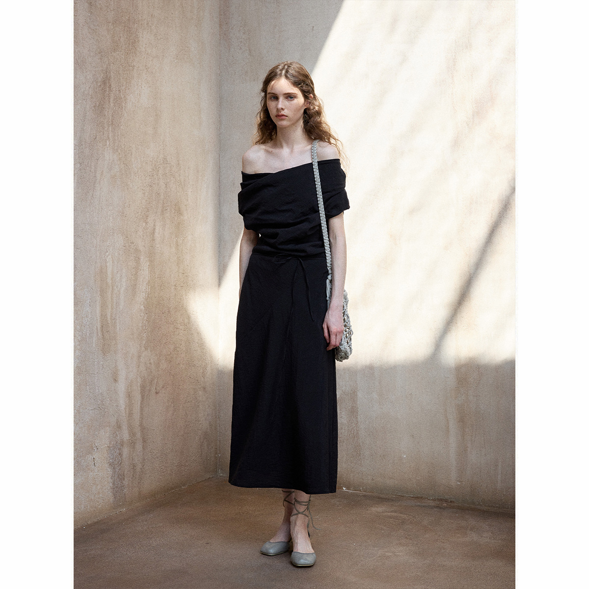 [테이블을 알아보세요] 여성용 여름 부드럽고 시원한 텐셀 트위스트 원숄더 슬리밍 튜브탑 드레스 M8849