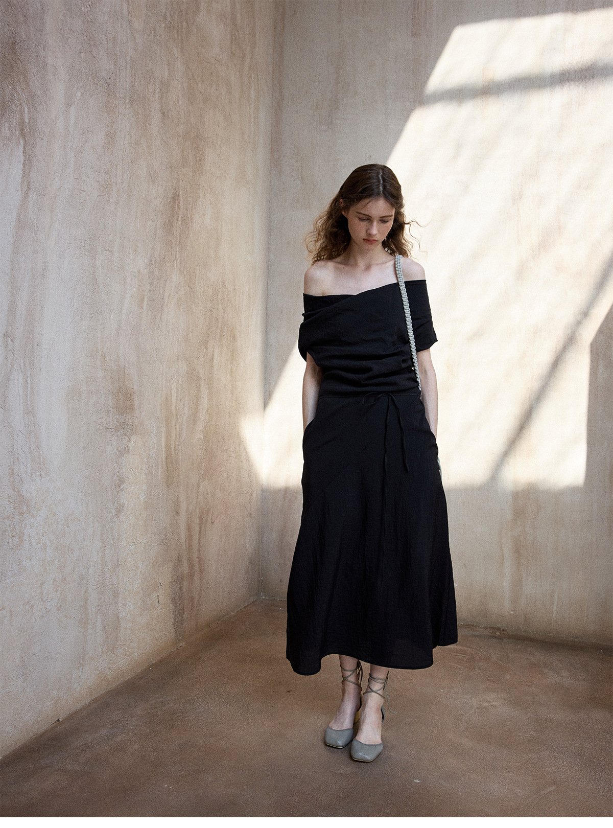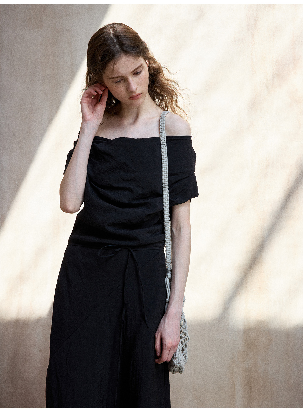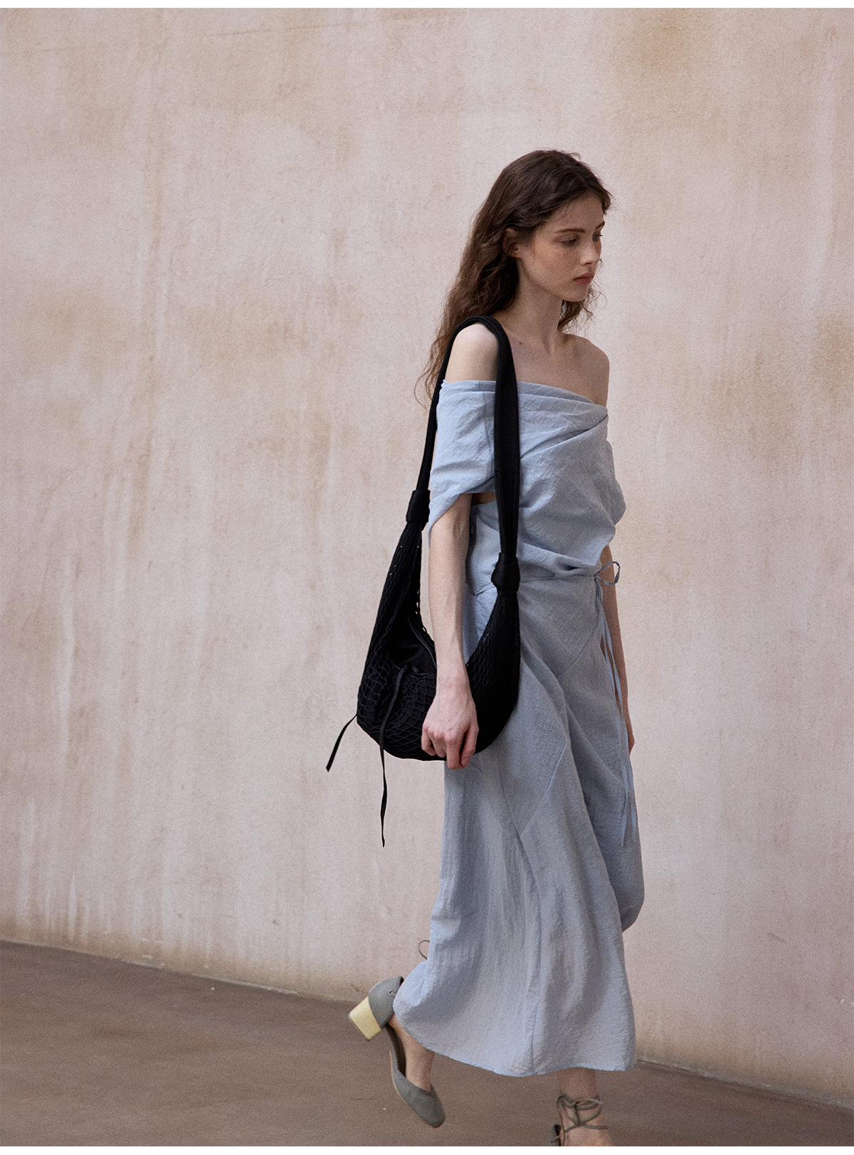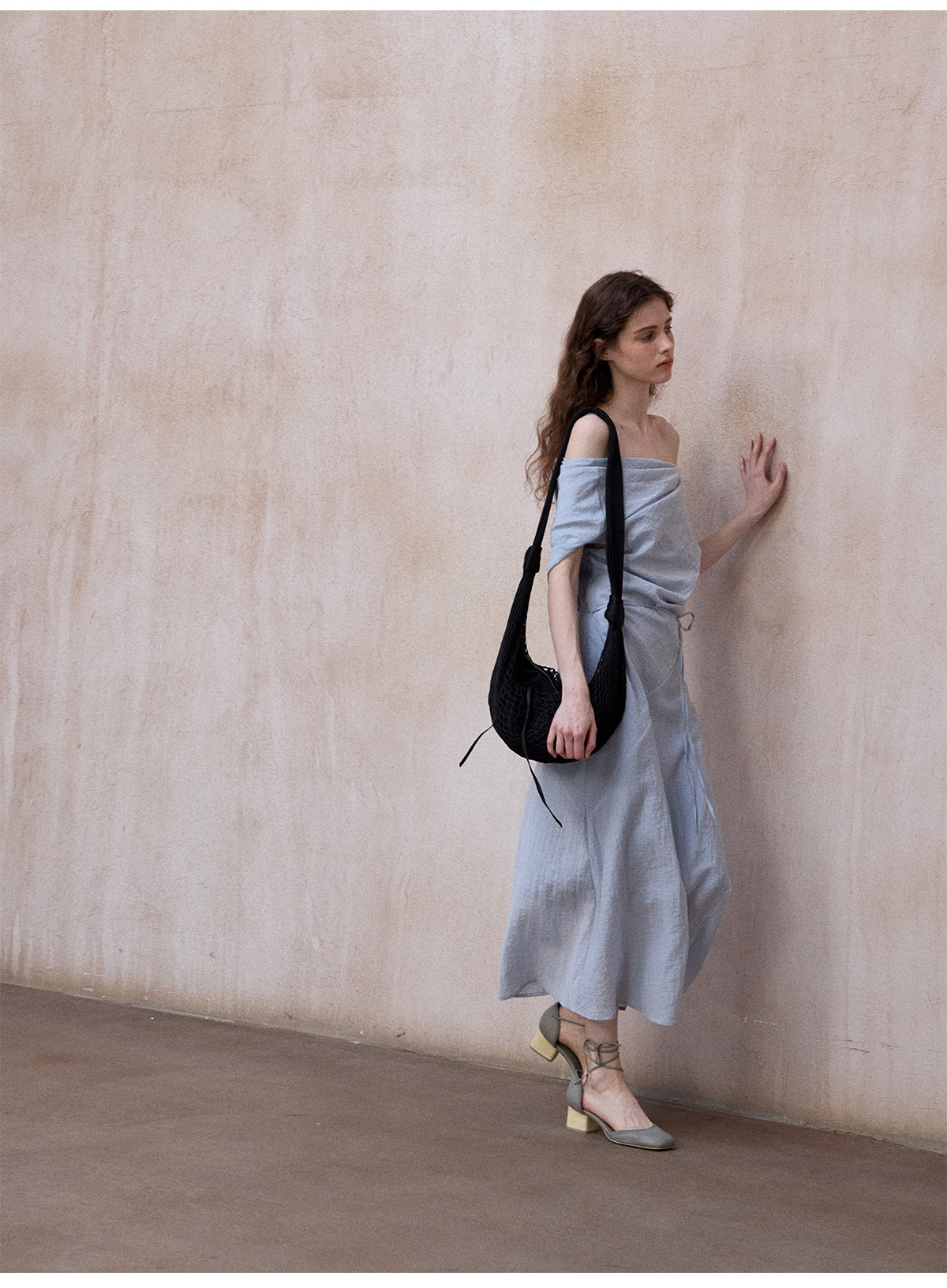 [테이블을 알아보세요] 여성용 여름 부드럽고 시원한 텐셀 트위스트 원숄더 슬리밍 튜브탑 드레스 M8849