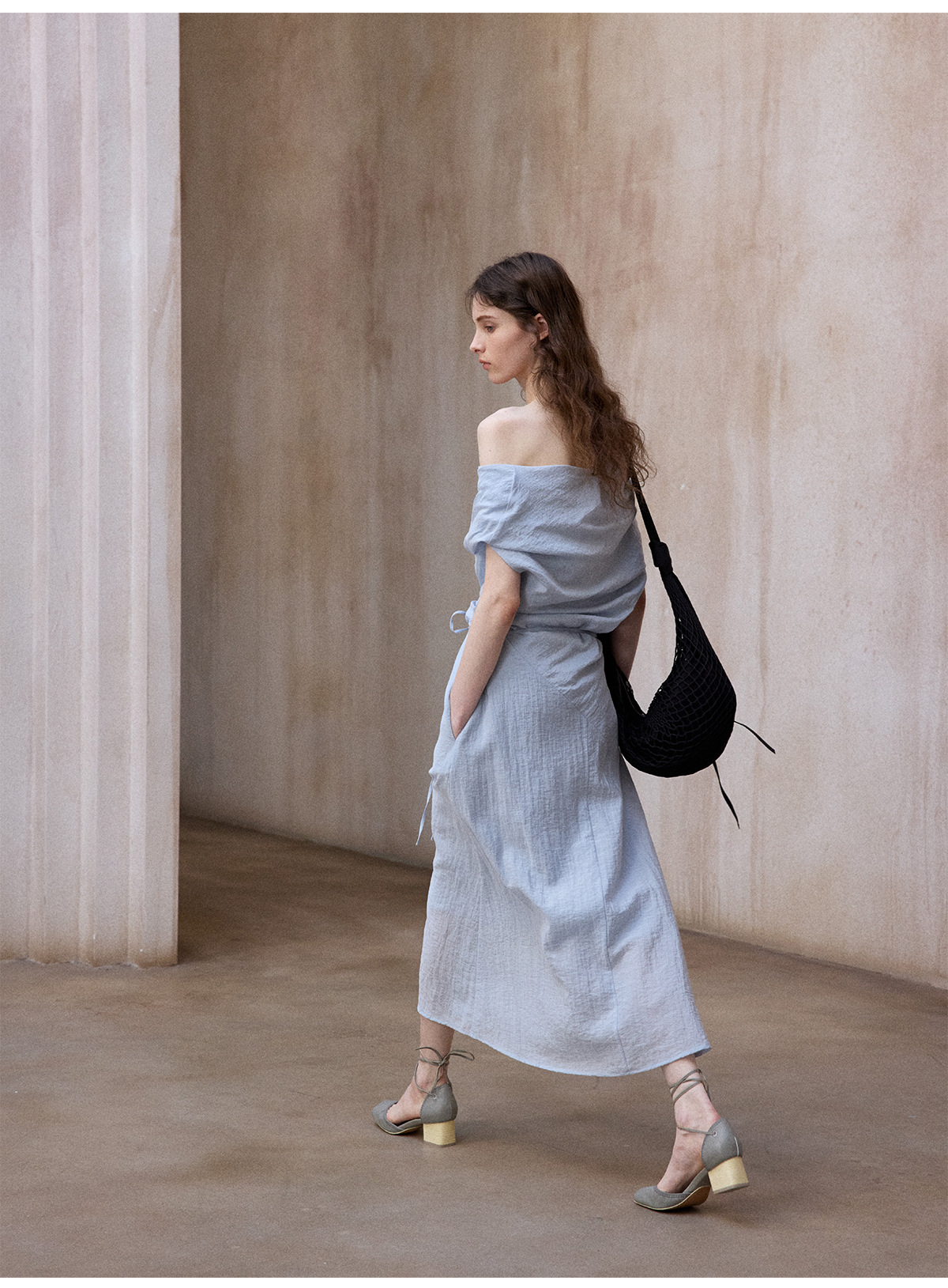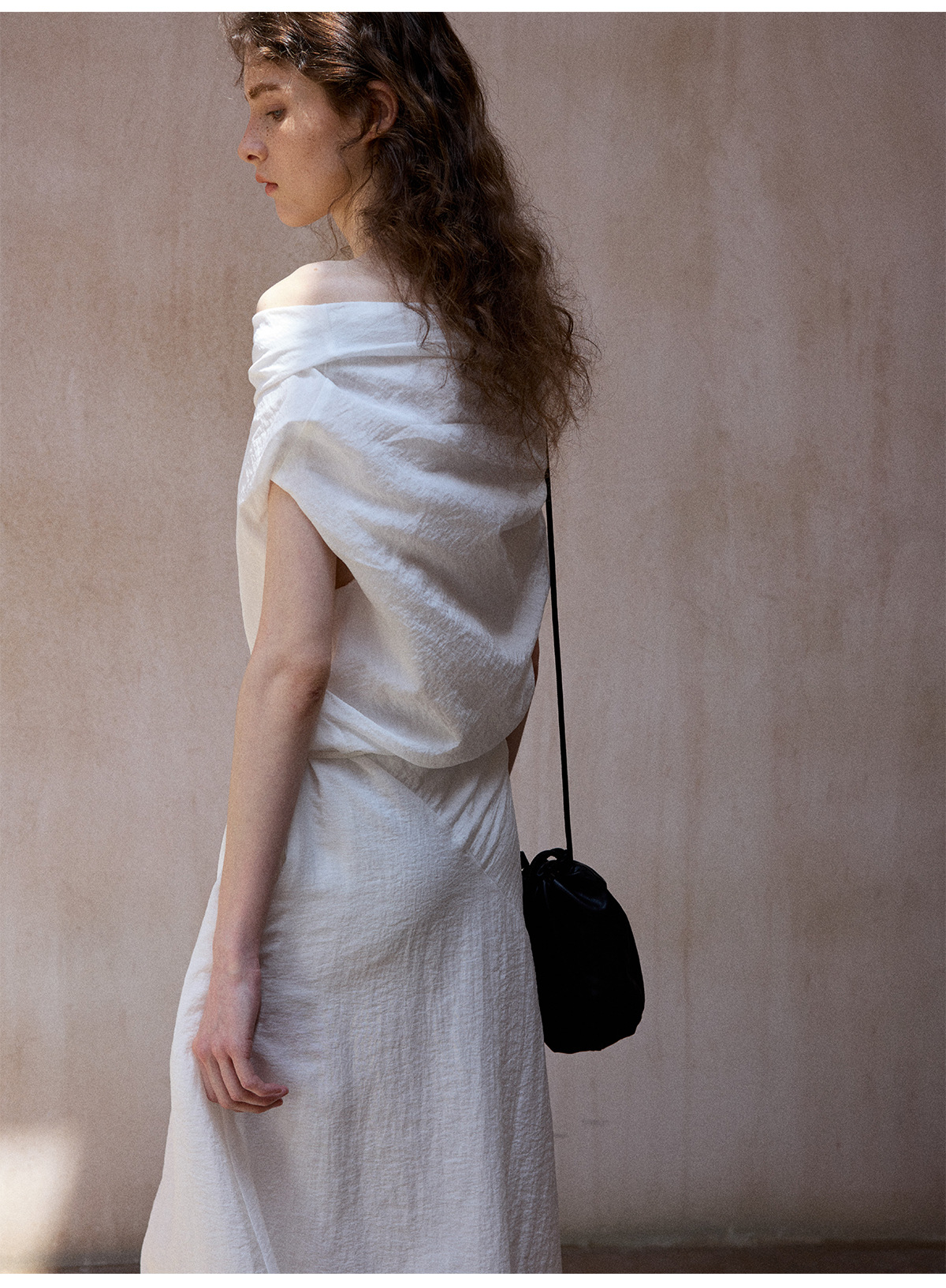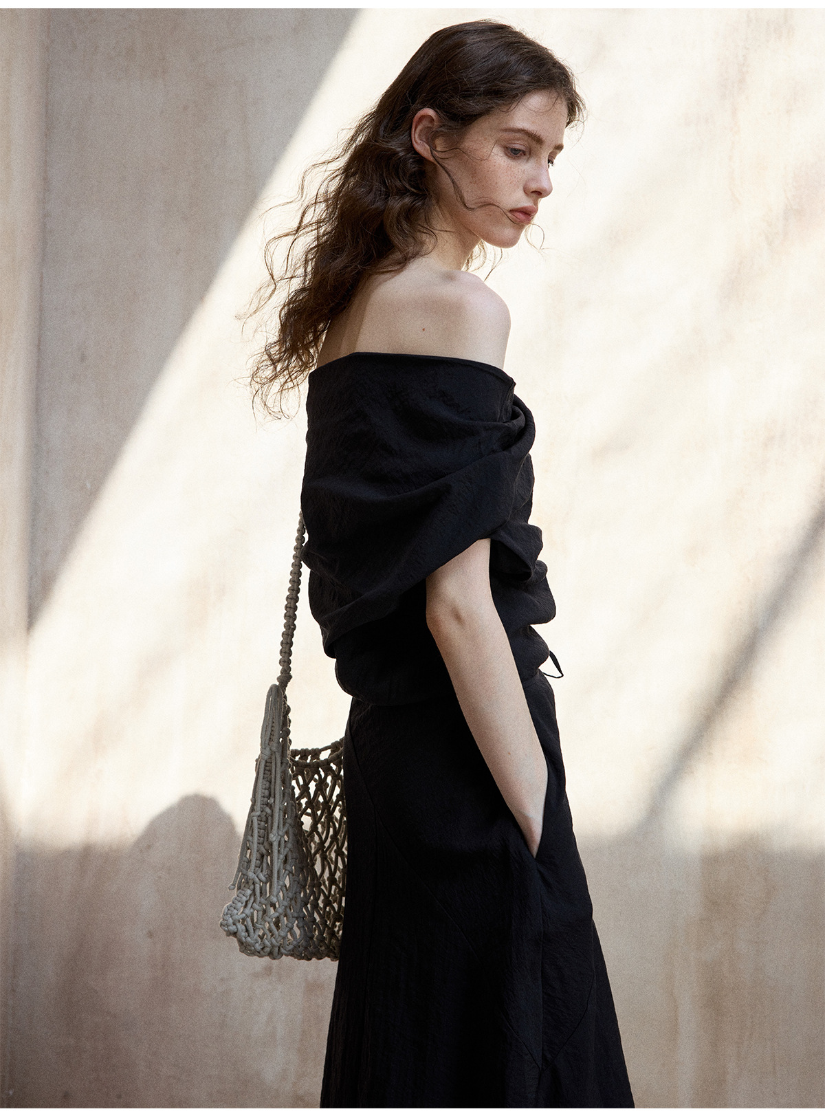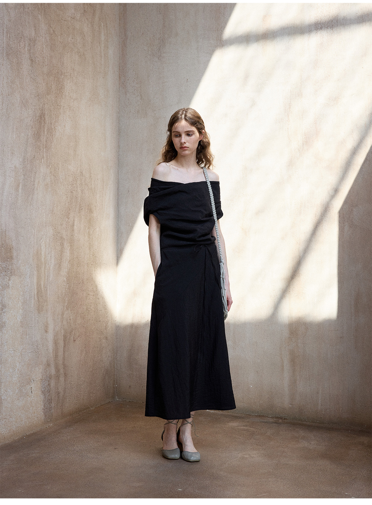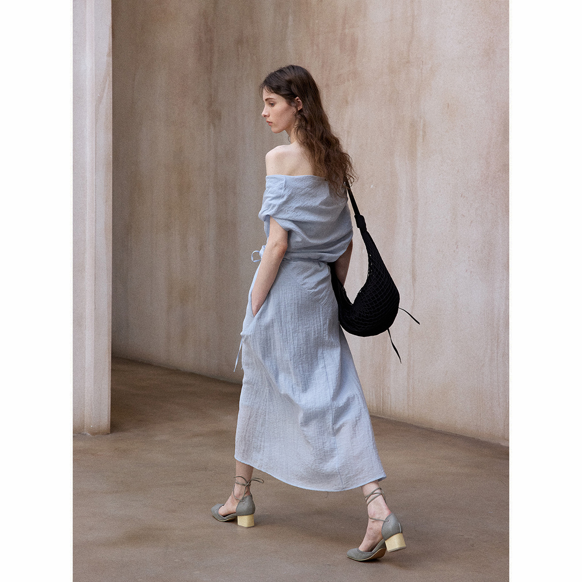 [테이블을 알아보세요] 여성용 여름 부드럽고 시원한 텐셀 트위스트 원숄더 슬리밍 튜브탑 드레스 M8849