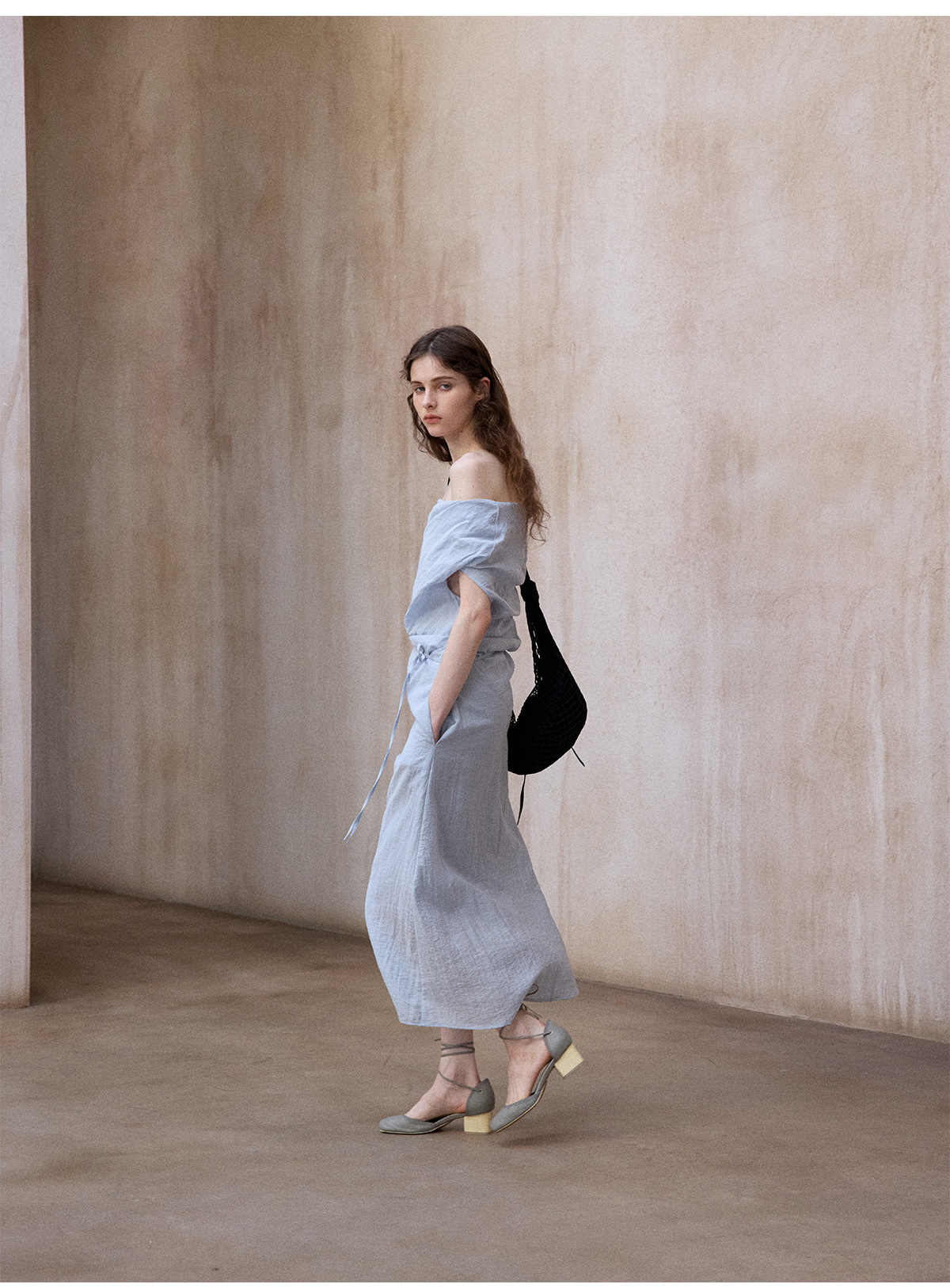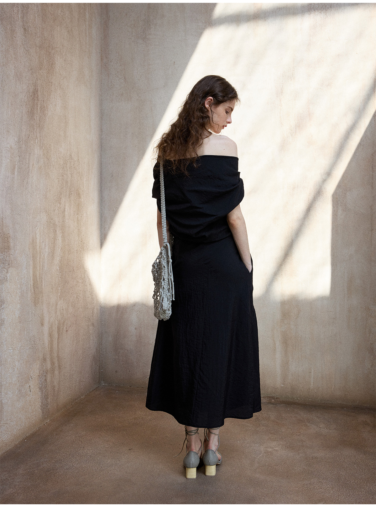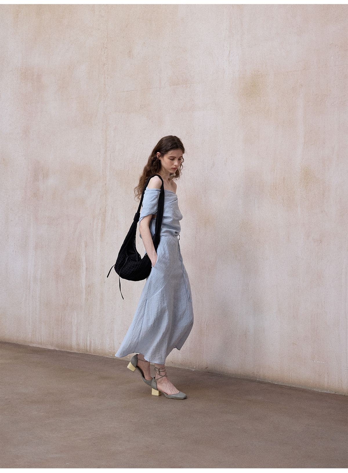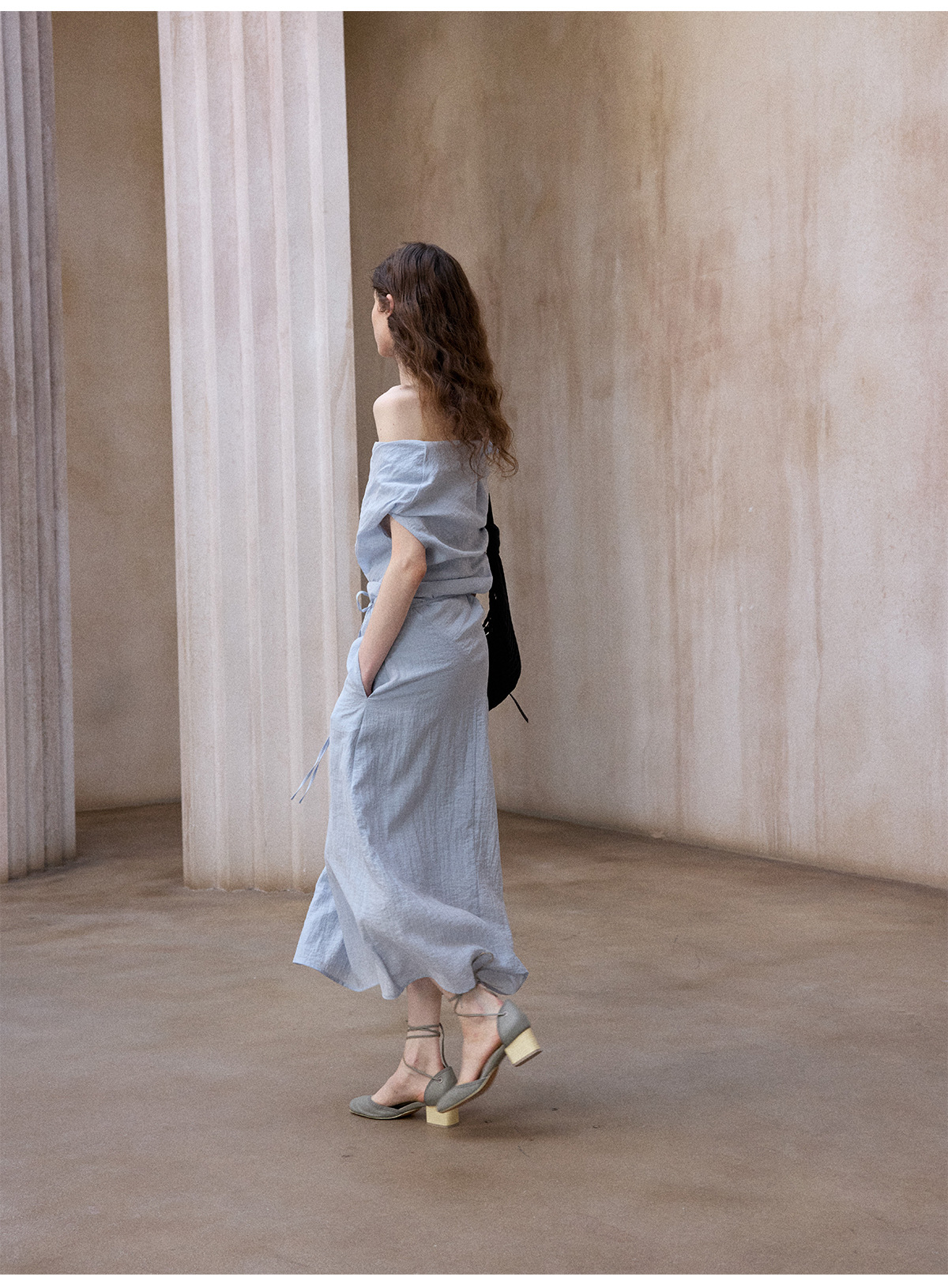 [테이블을 알아보세요] 여성용 여름 부드럽고 시원한 텐셀 트위스트 원숄더 슬리밍 튜브탑 드레스 M8849