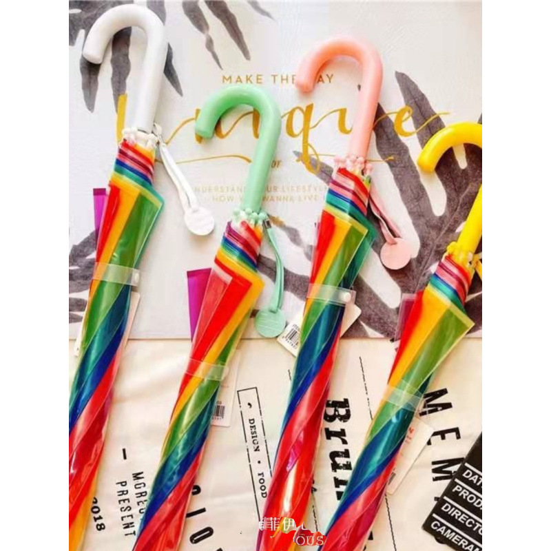 무지개 우산 어린이 투명 우산 소녀 초등학생 귀여운 소년 유치원 아기 성능 작은 긴 손잡이 우산