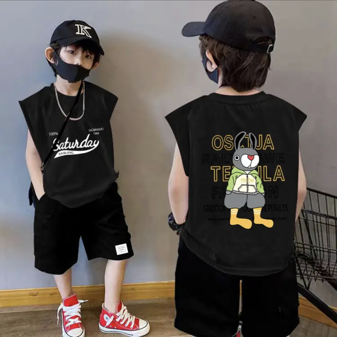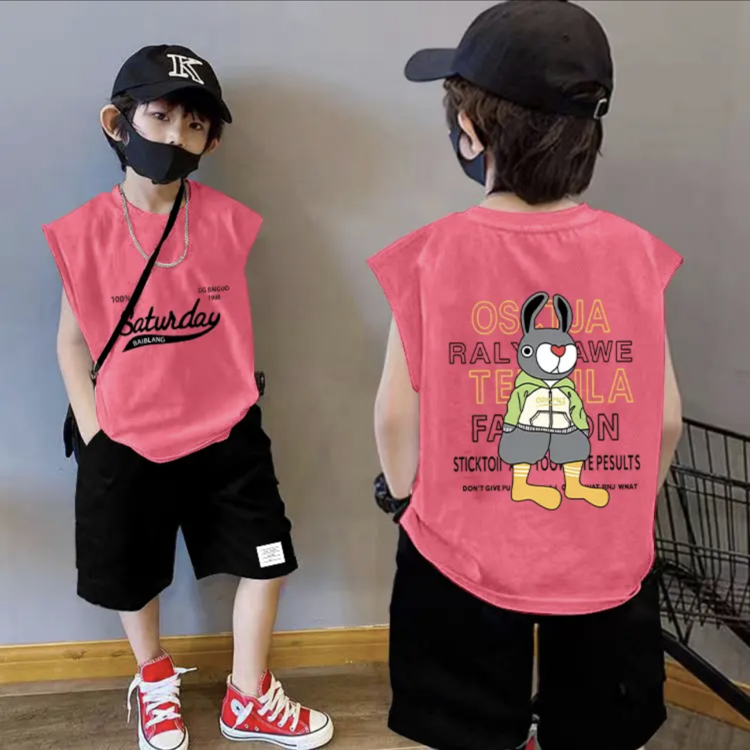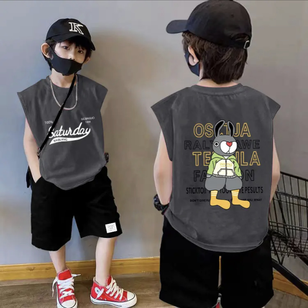 소년 조끼 아기 소년의 여름 간단한 순수한 면 외부 착용 어린이 민소매 여름 티셔츠 여름 트렌디 T스토어 가기