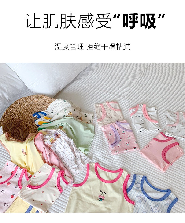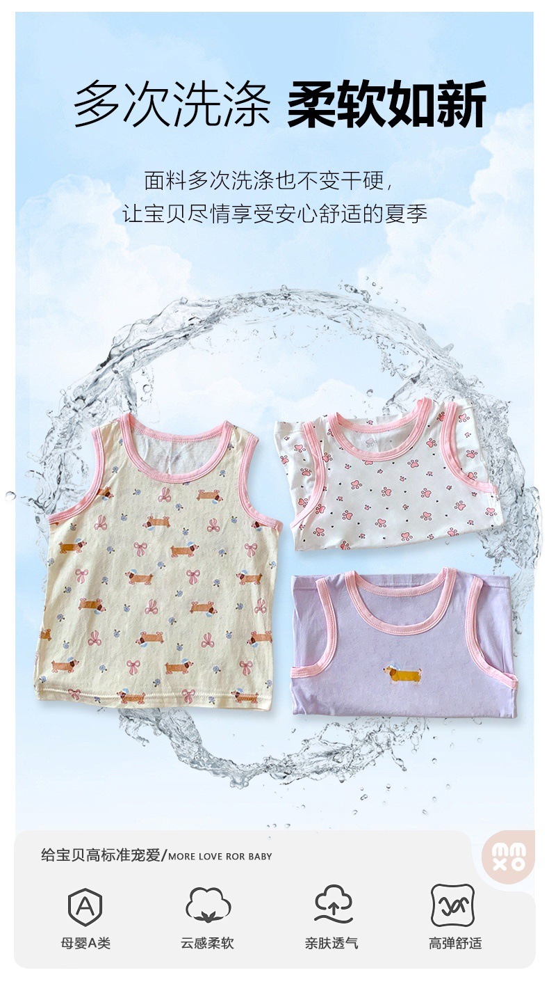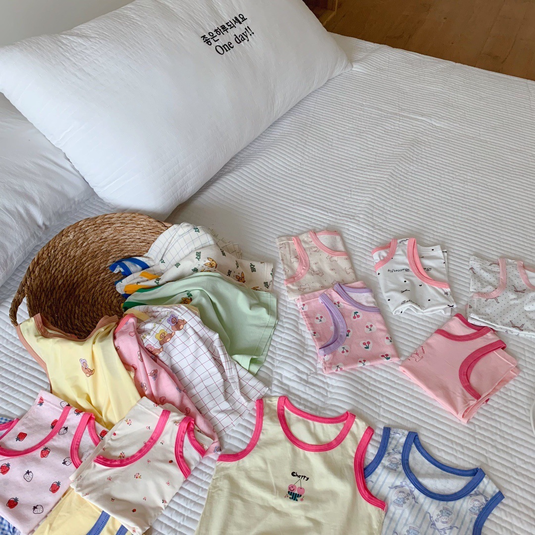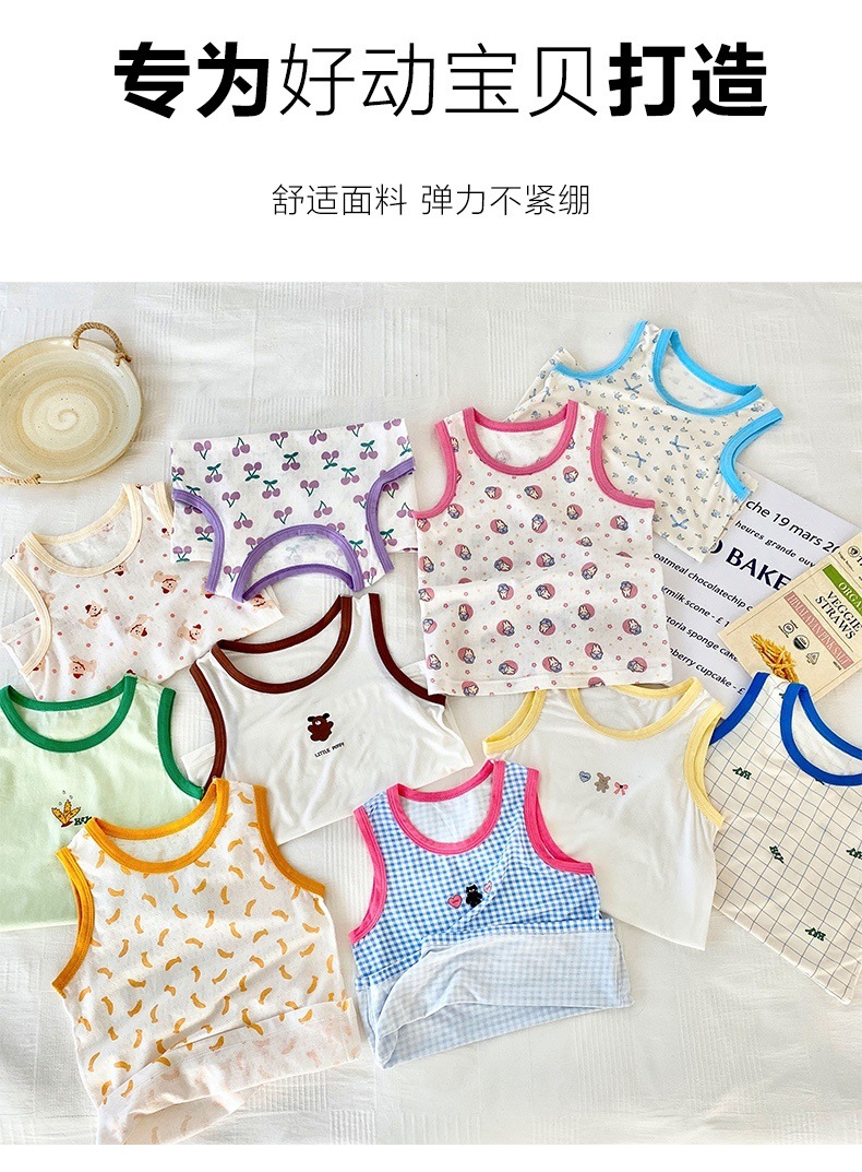 조끼 어린이 클래스 a 얼음 실크 조끼 2 조각 가방 90-170 소년 민소매 티셔츠 소녀 탑 만화 인쇄