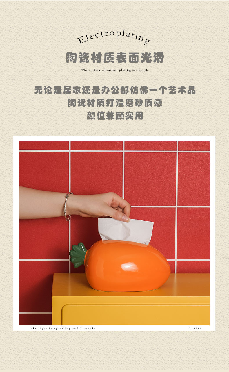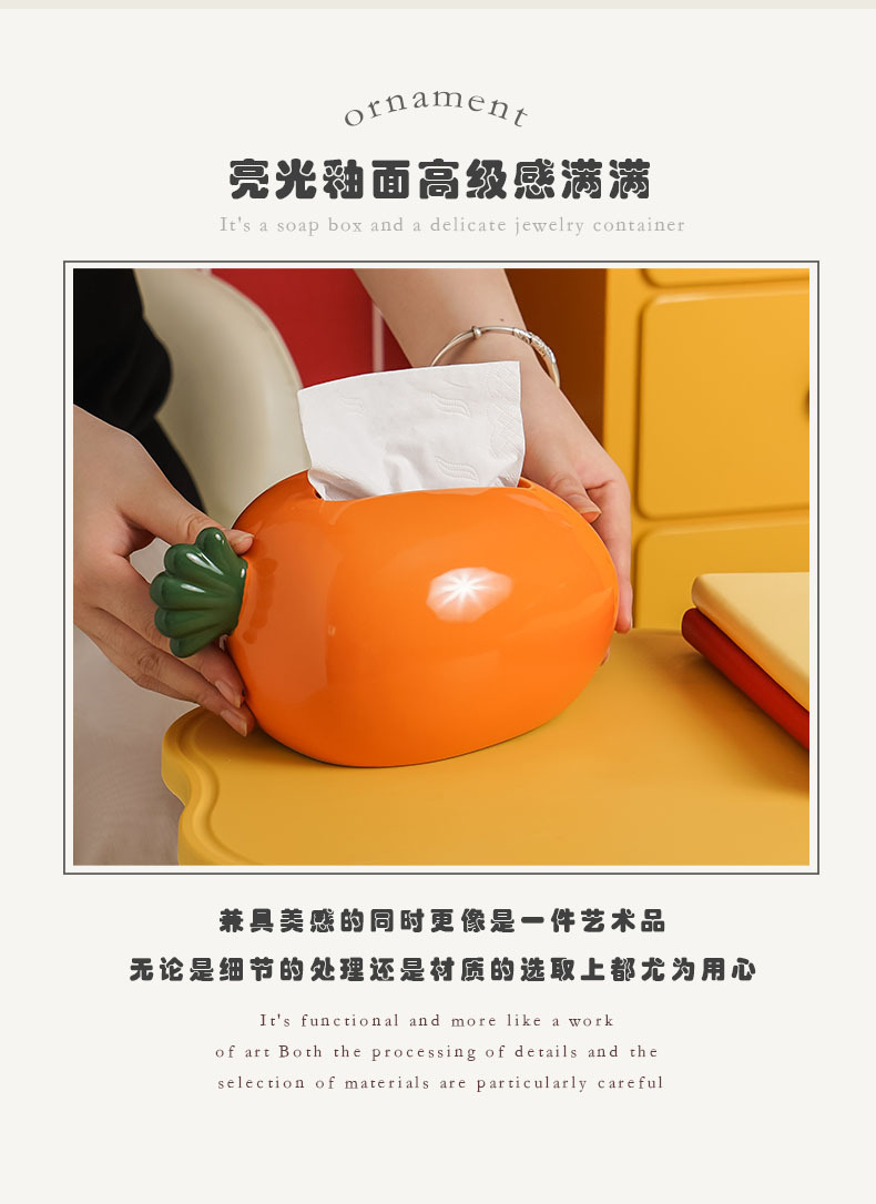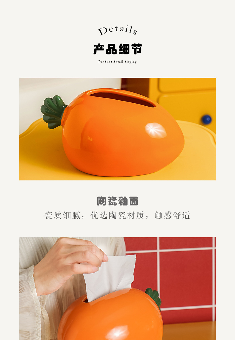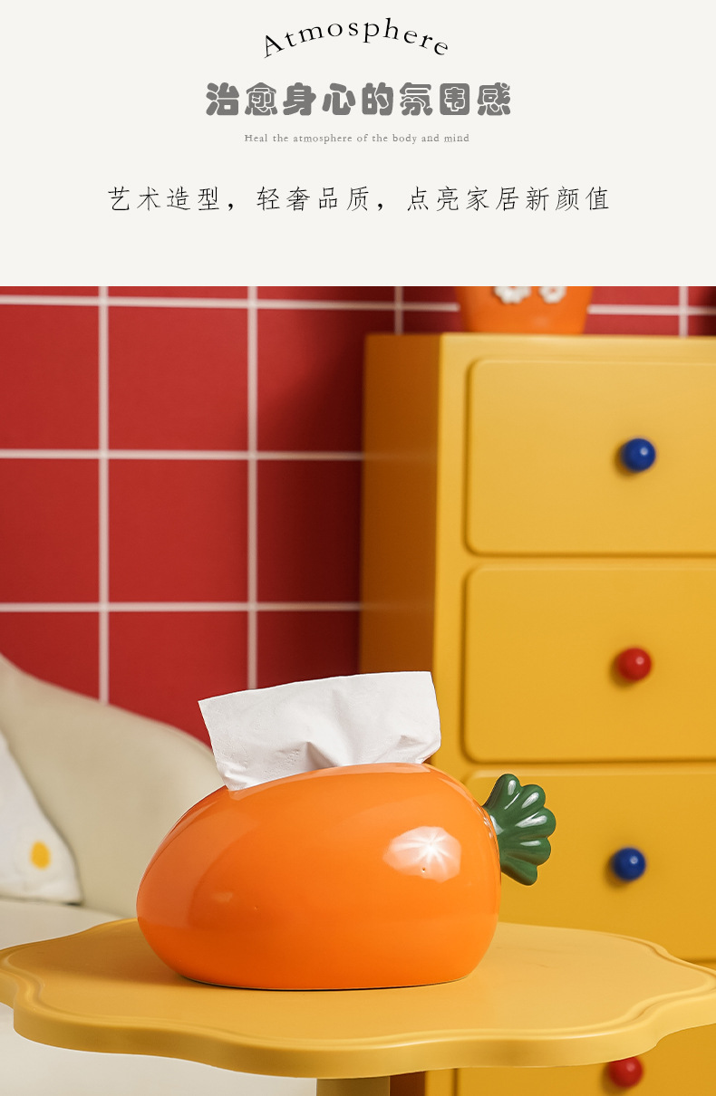 창의적인 당근 모양 세라믹 티슈 박스, 욕실, 거실, 가정용, 심플하고 고급스러운 디자인, 독특한 장식용 티슈 박스
