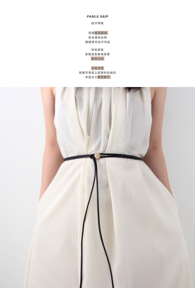 여름에 스커트와 셔츠를 매치할 수 있는 여성용 새 부드러운 가죽 로프 얇은 벨트, 다재다능하고 패셔너블한 장식, 조절 가능한 허리 로프, 트렌디한 땋기