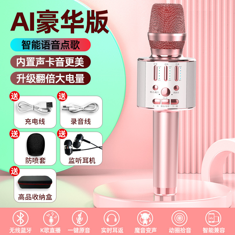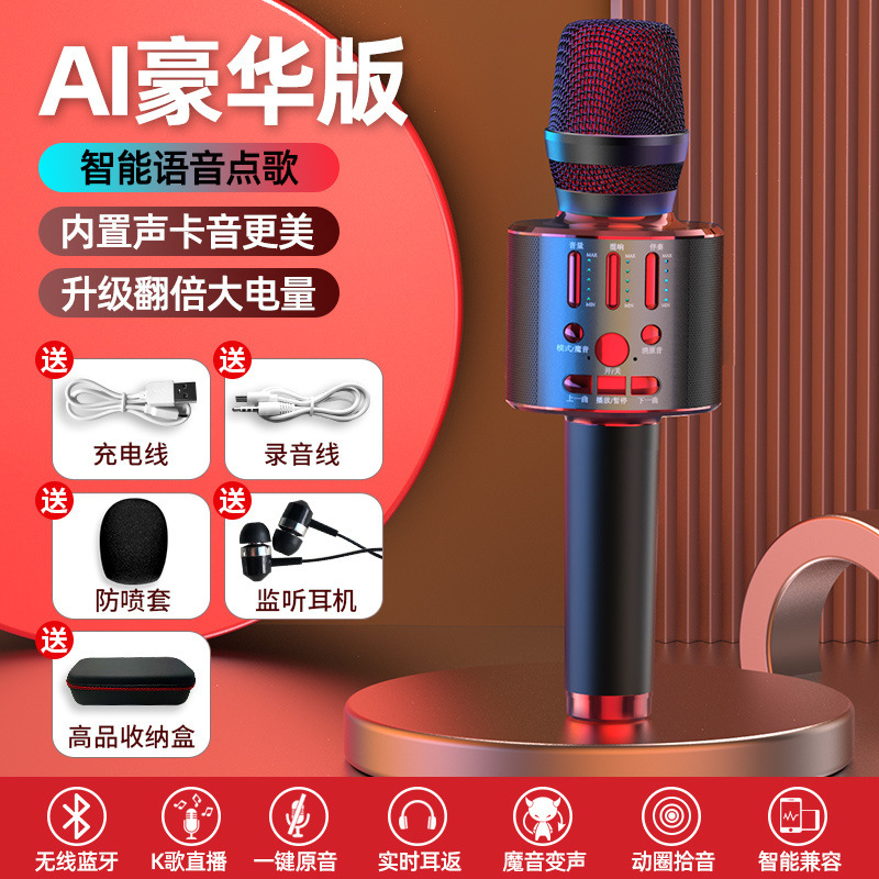마이크와 오디오가 통합된 마이크 휴대폰 노래방 아티팩트에는 사운드 카드가 함께 제공됩니다. 무선 블루투스 홈 TV 국민 노래스토어 가기