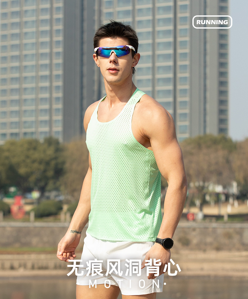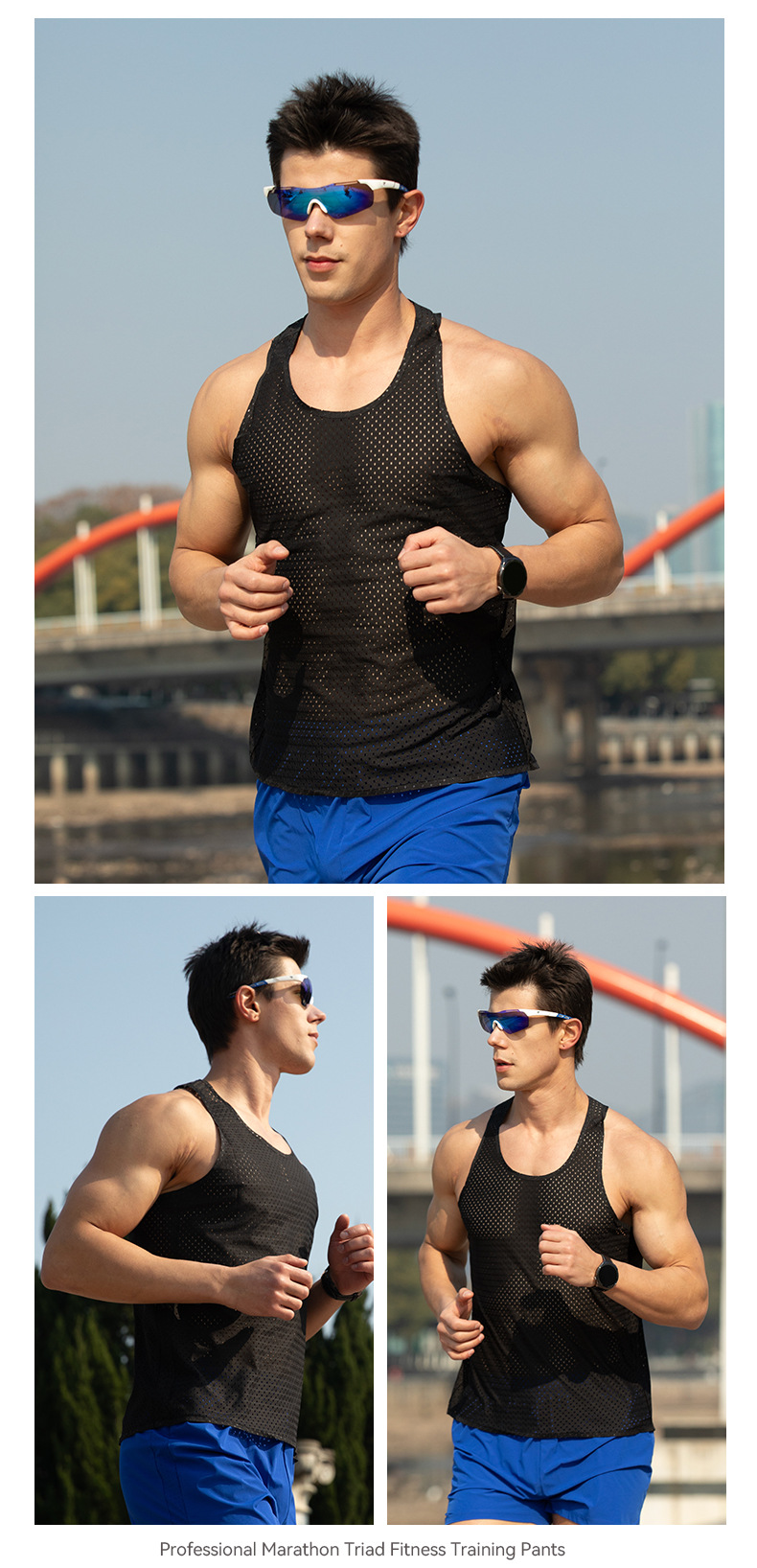 야외 마라톤 속건성 조끼 남자 여름 달리기 피트니스 탄성 풍력 터널 메쉬 스포츠 민소매 조끼