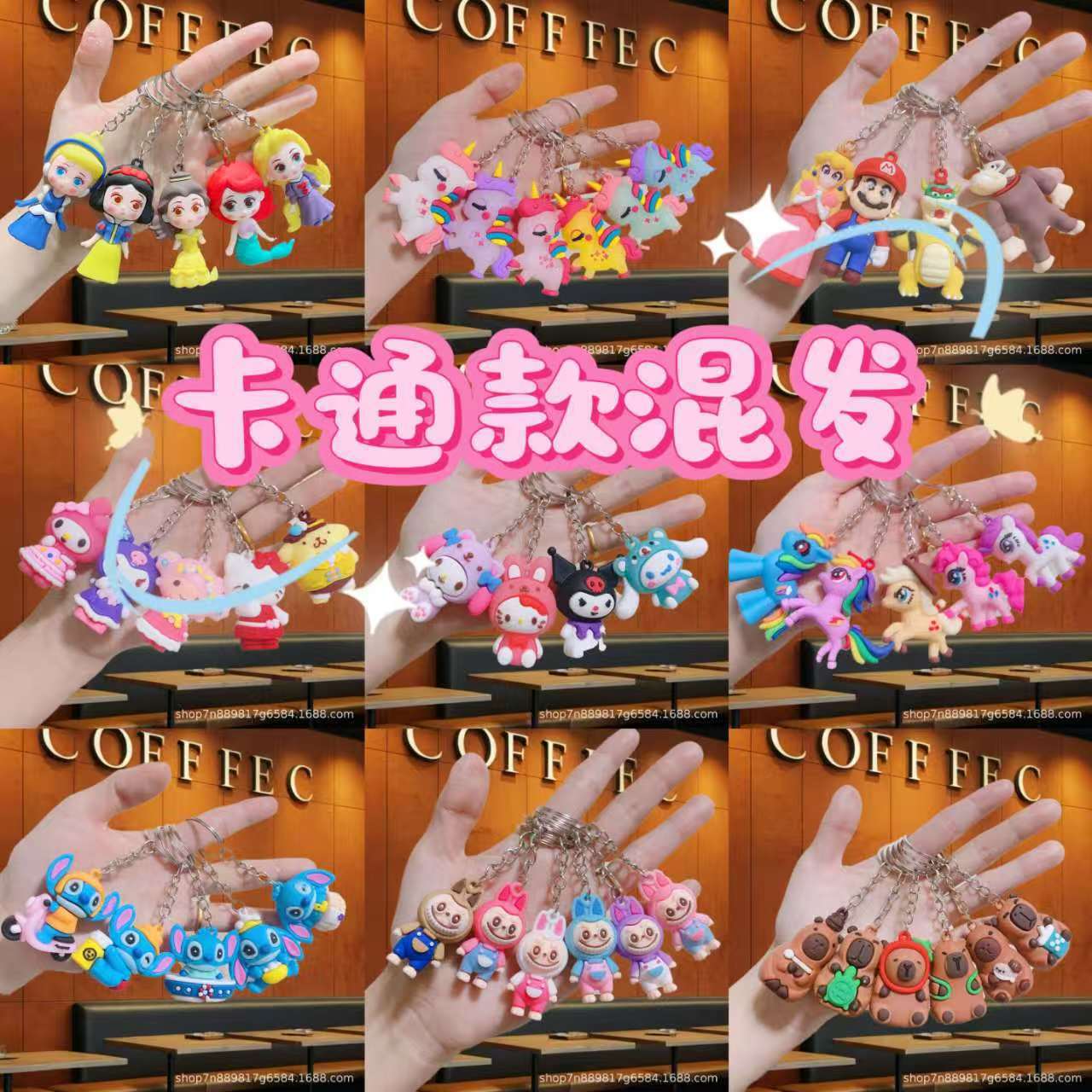 도매 귀여운 키 체인 인형 펜던트 혼합 PVC 인형 학생 어린이 인형 야시장 작은 선물스토어 가기