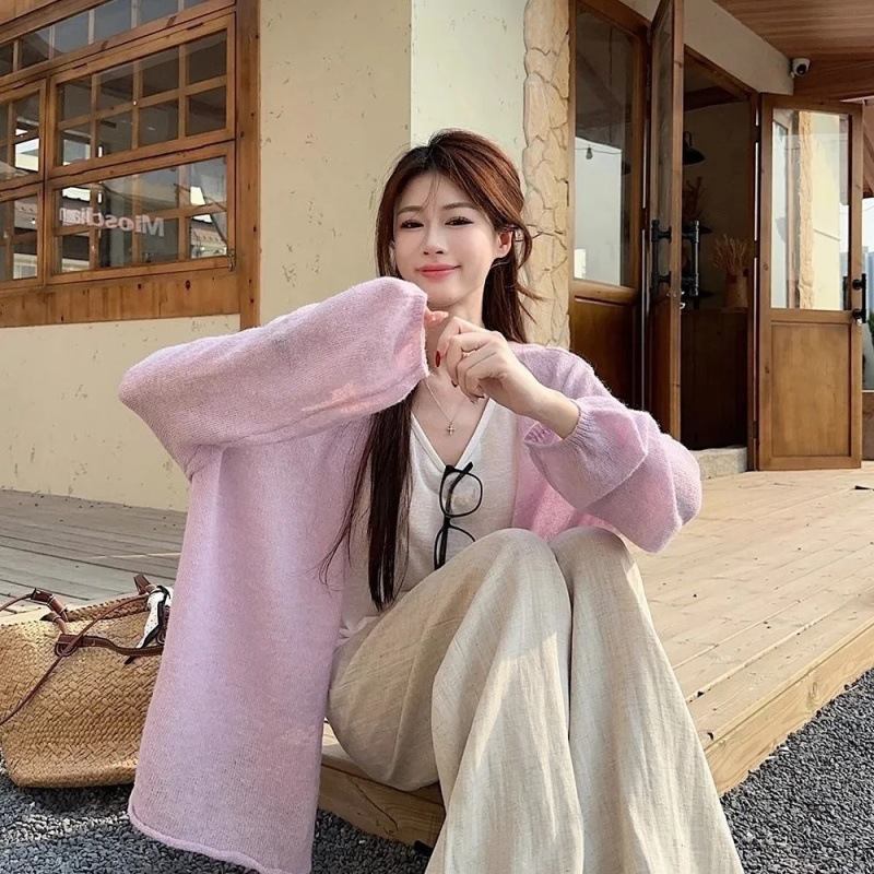 부드러운 스타일 솔리드 컬러 다목적 캐주얼 니트 카디건 여성 여름 게으른 느슨한 얇은 외부 에어컨 블라우스 탑스토어 가기