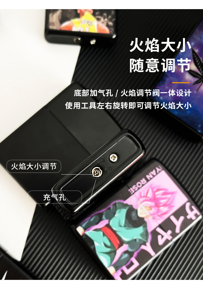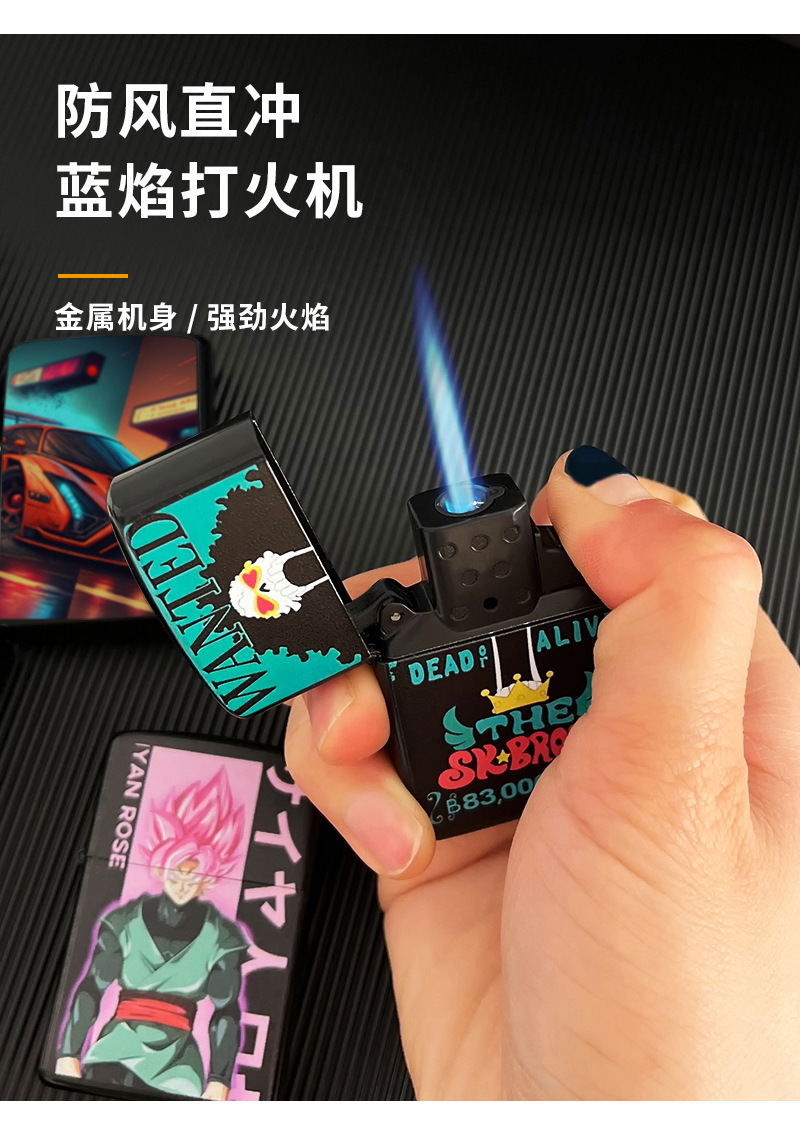 공장 직접 만화 컬러 인쇄 전기 영동 검은 금속 풍선 방풍 라이터 창조적 인 남자 친구 비 등유