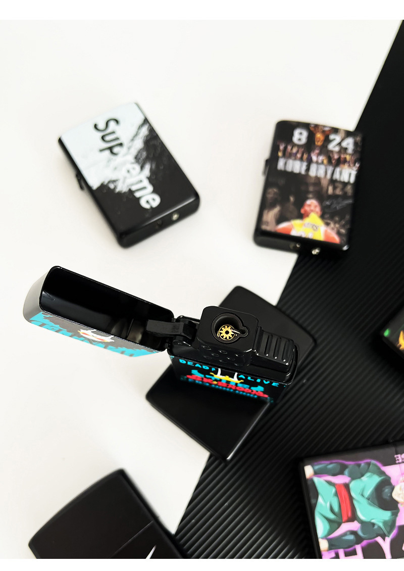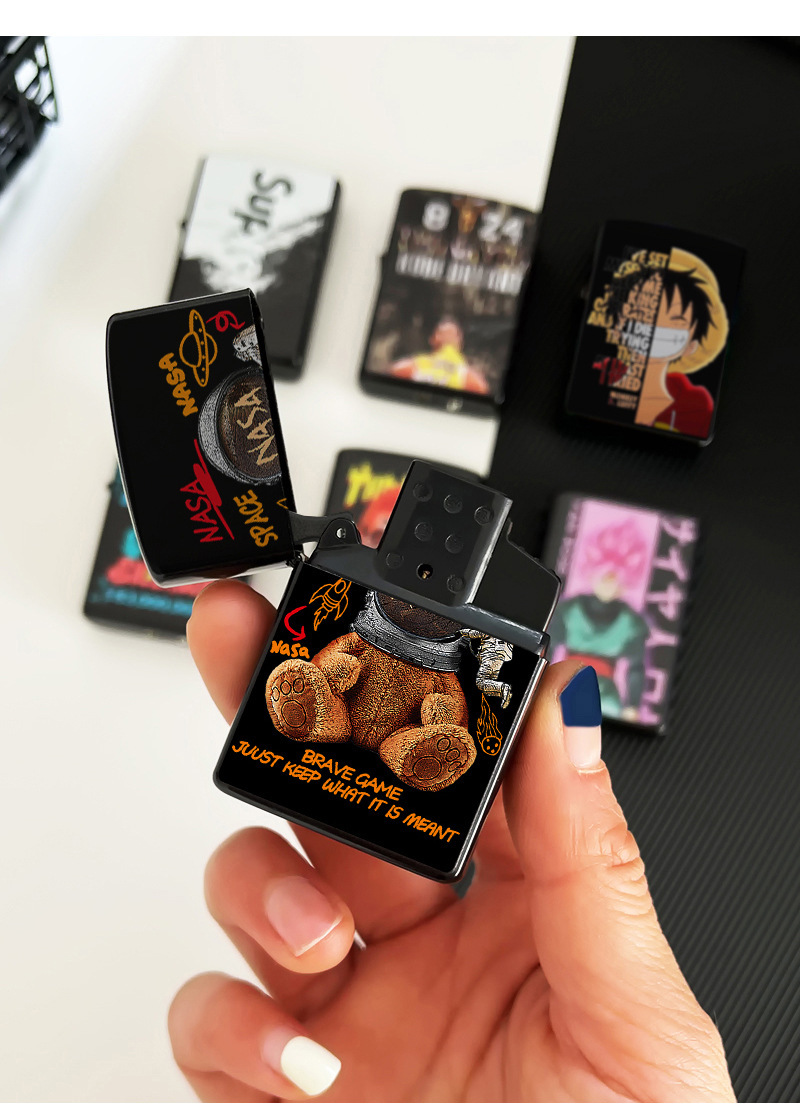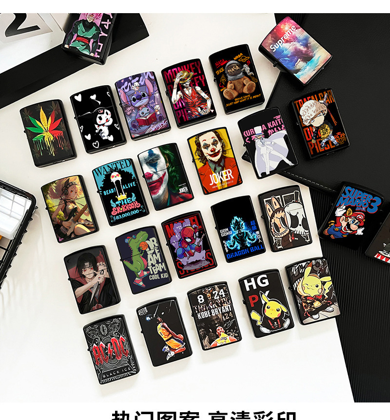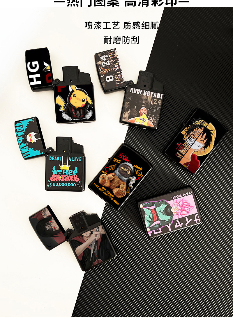 공장 직접 만화 컬러 인쇄 전기 영동 검은 금속 풍선 방풍 라이터 창조적 인 남자 친구 비 등유스토어 가기