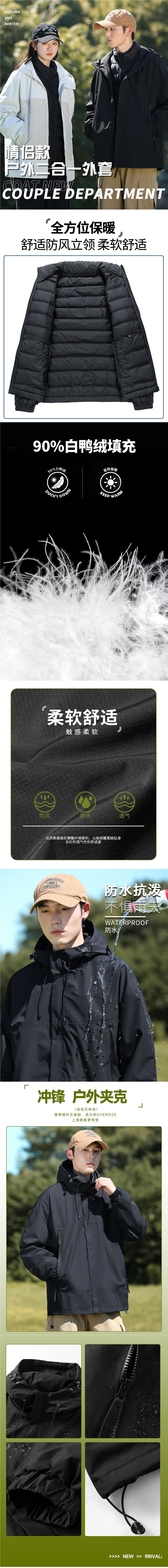 가을, 겨울 커플 스타일 컬러 블록 청소년 야외 재킷 남성용 방수 및 방풍 3-in-One 재킷스토어 가기