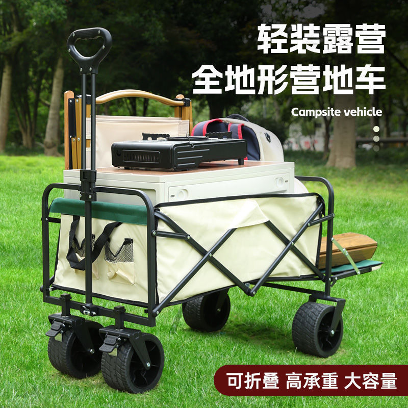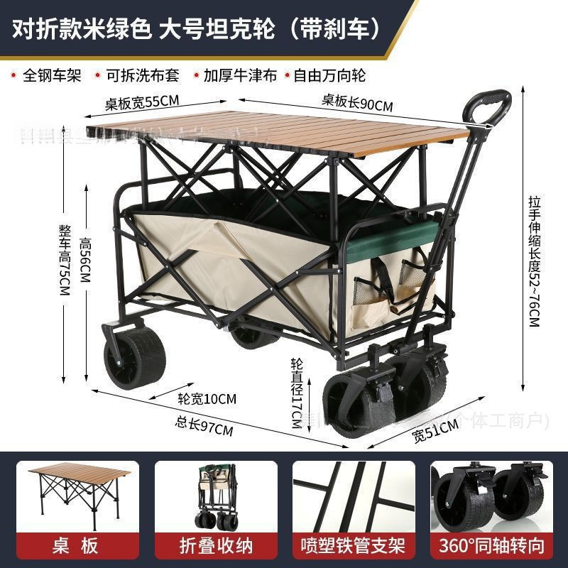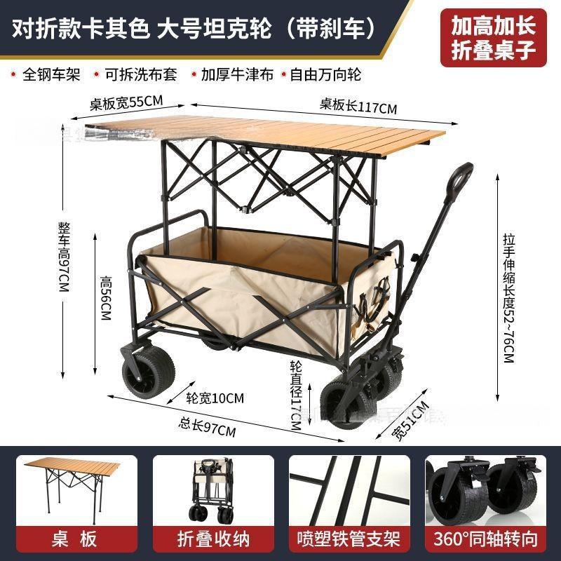 • [상위 구성] 카키/ 10inch 탱크 더블 브레이크 유니버설 휠 - 스톨 접이식 테이블 + 야외 캠핑카 /