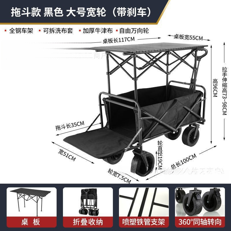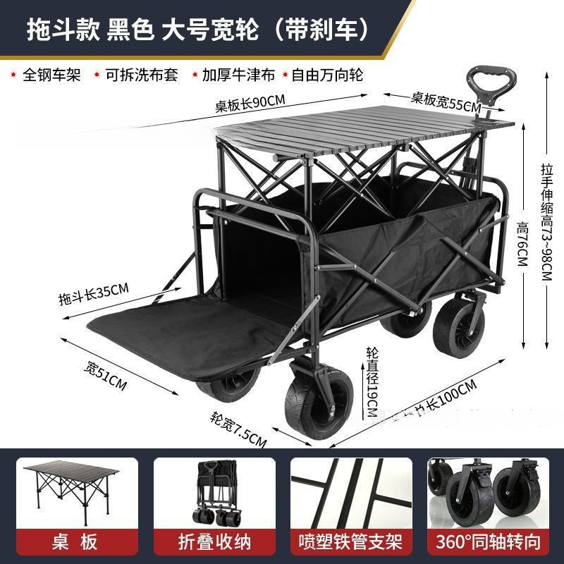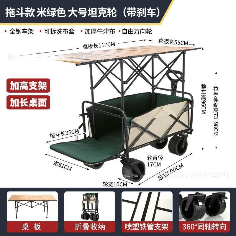 • 트레일러 버킷 모델 - 카드 그린/탱크 10inch 더블 브레이크 유니버설 휠 - 확장 및 높이 조절 가능 접이식 테이블 + 야외 캠핑카/