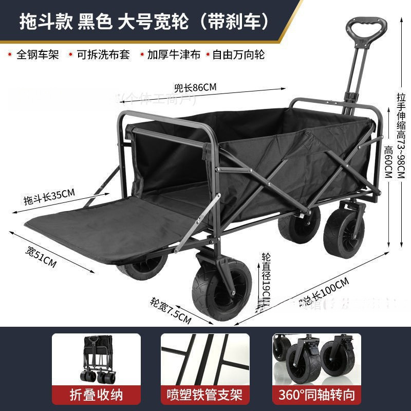 • 드래그 버킷 모델 - 블랙/오프로드 8inch 더블 브레이크 유니버설 휠 - 스톨 접이식 테이블 + 야외 캠핑카/