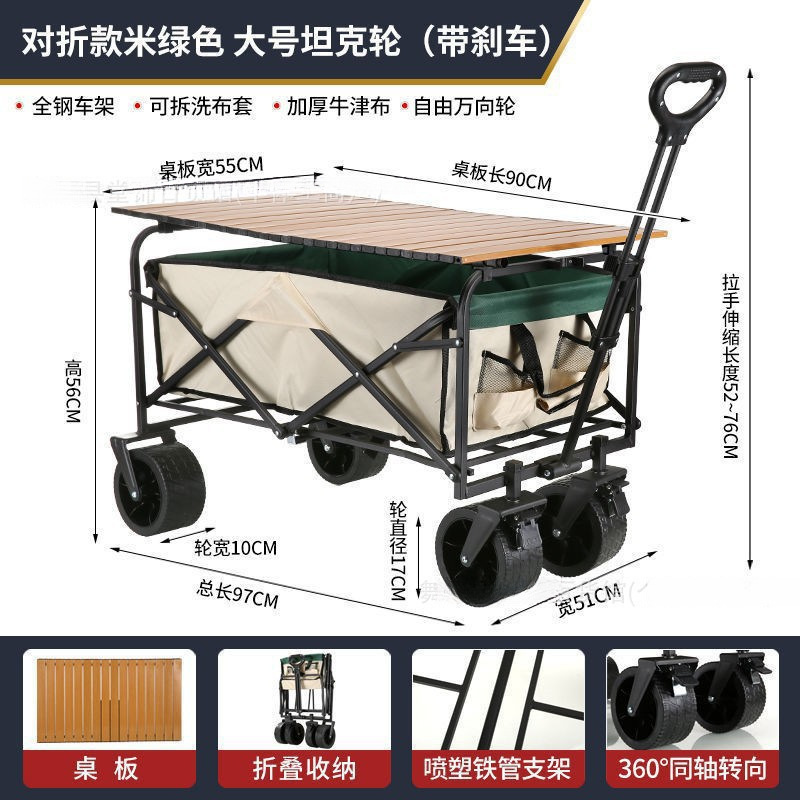 • [상위 구성] 카드 그린/ 10inch 탱크 더블 브레이크 유니버설 휠 - 스톨 접이식 테이블 + 야외 캠핑카 /