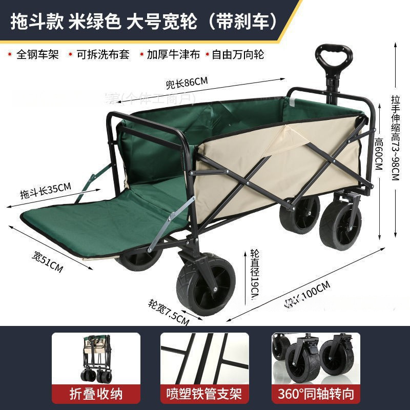 • 트레일러 버킷 모델 - 카드 그린/오프로드 8inch 더블 브레이크 유니버설 휠 - 스톨 접이식 테이블 + 야외 캠핑카/