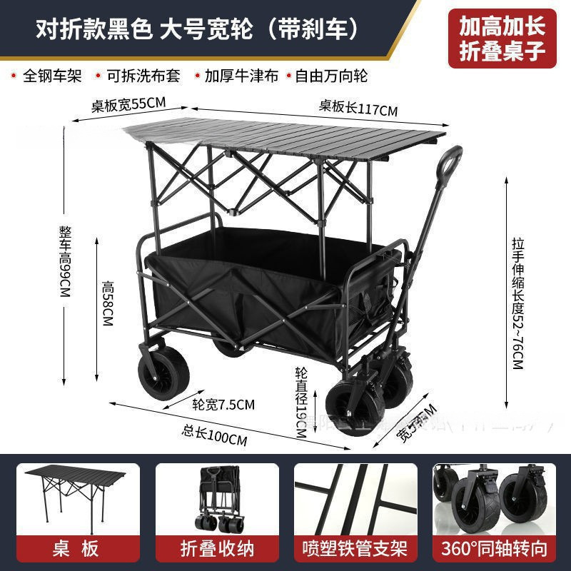 • [상위 구성] 블랙/ 10inch 탱크 휠 더블 브레이크 유니버설 휠 확장 및 높이 스톨 접이식 테이블 + 야외 캠핑카 /
