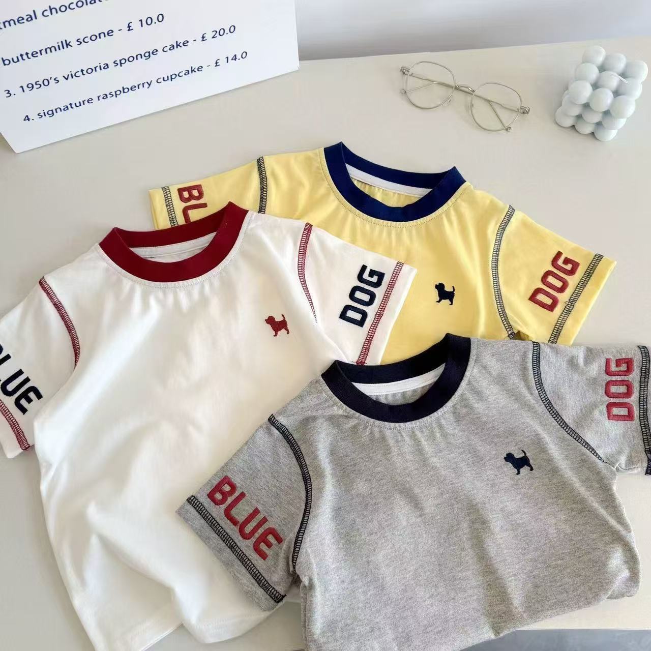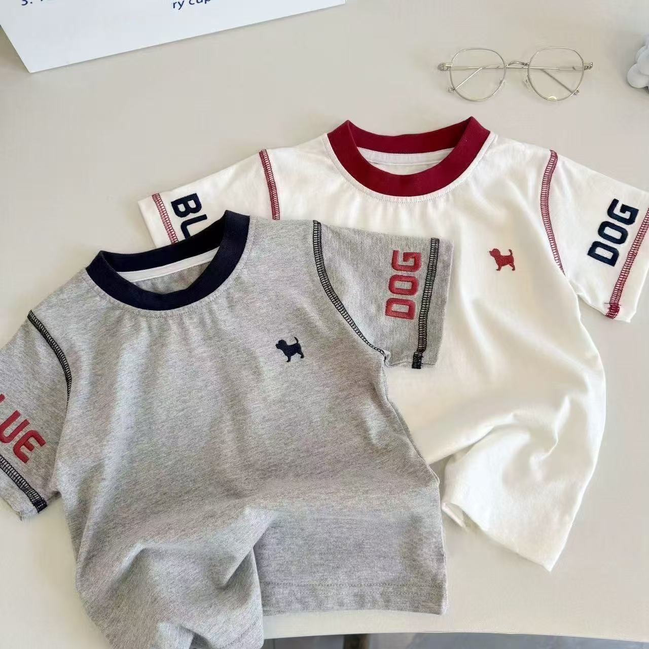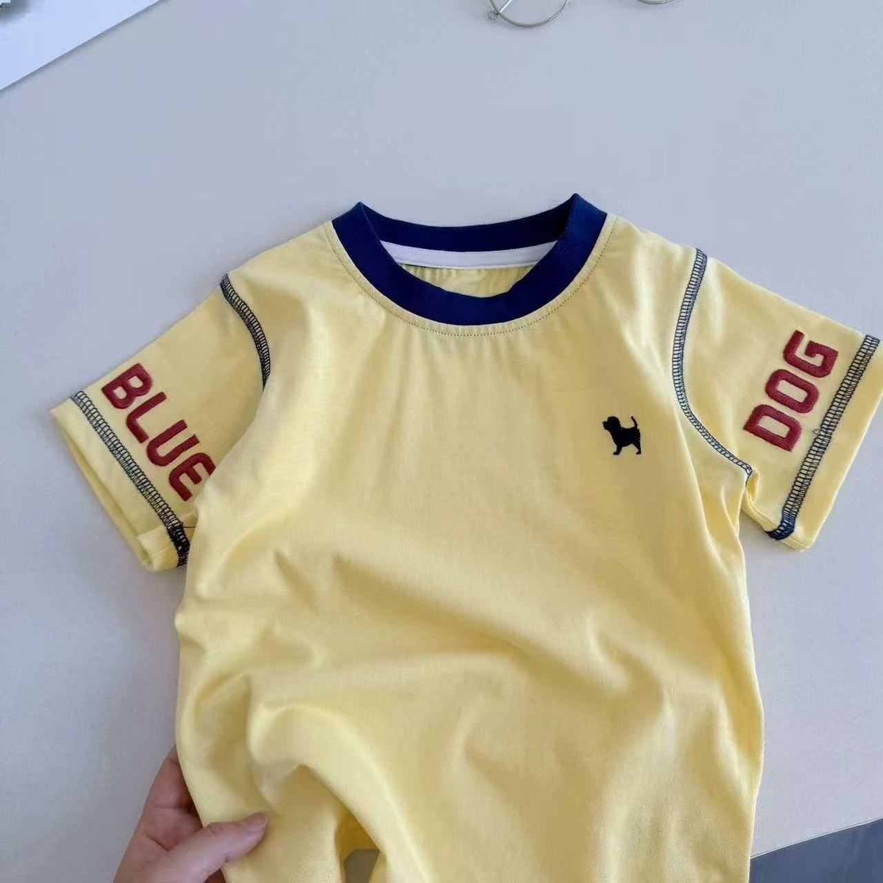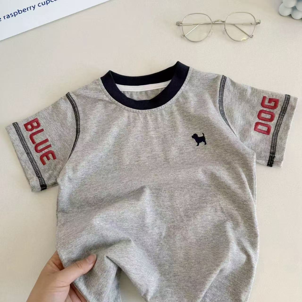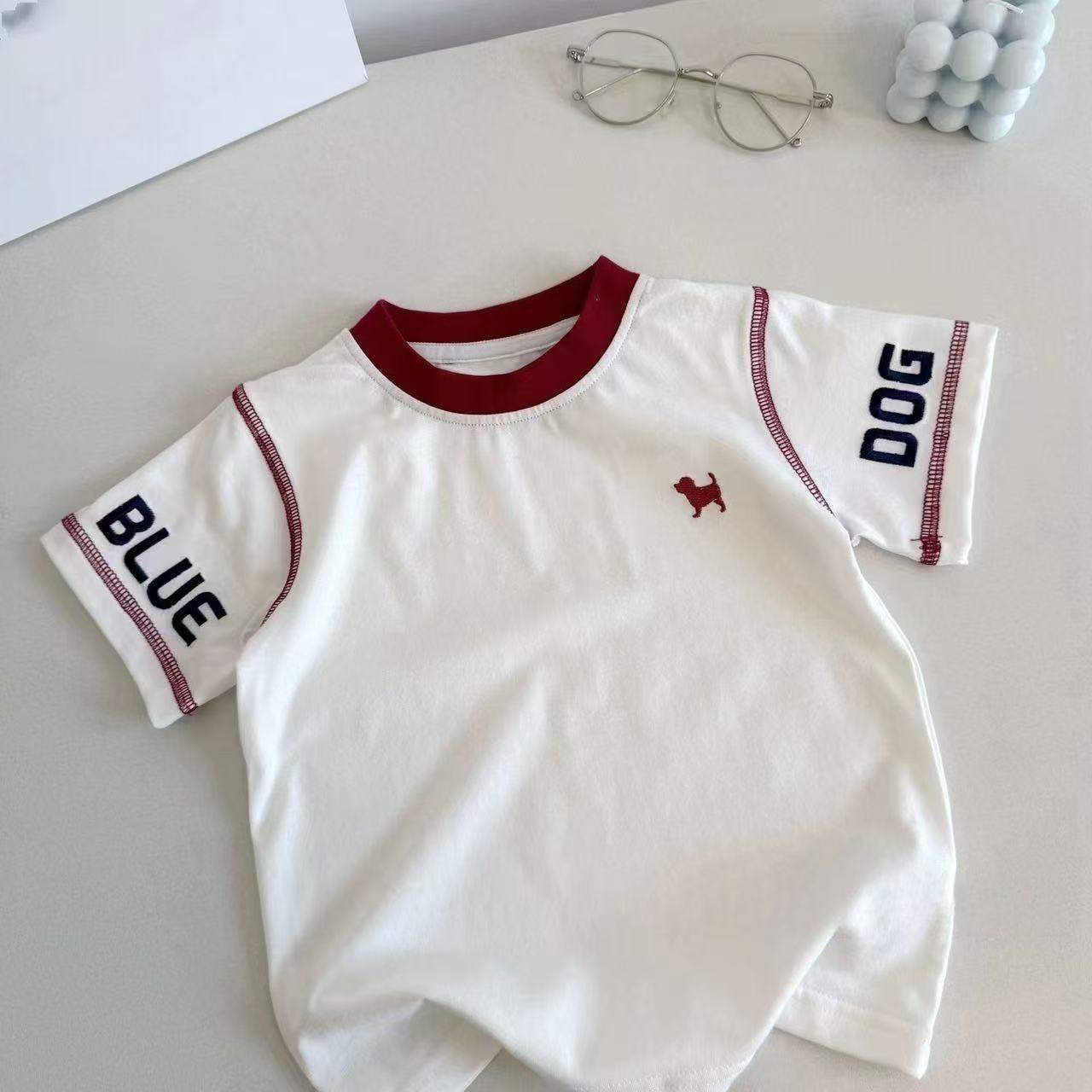 여름 어린이 반팔 어린이 순면 라운드 넥 탑 베이비 트렌디 캐주얼 반팔 티셔츠 일본 여름 스타일
