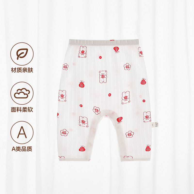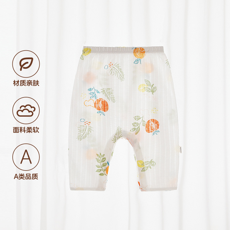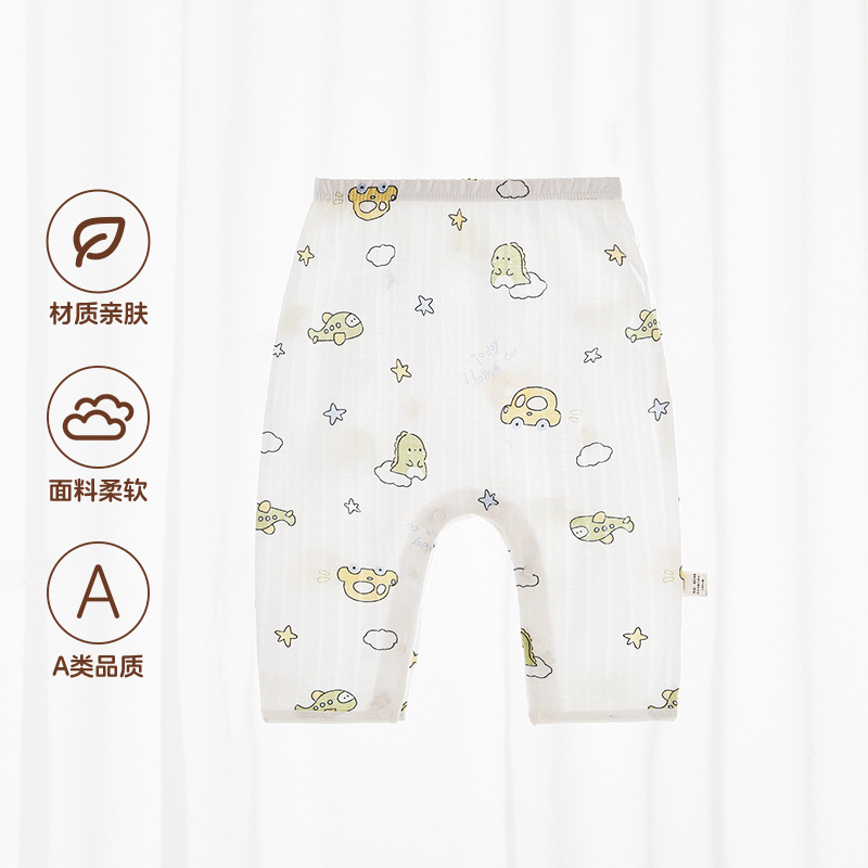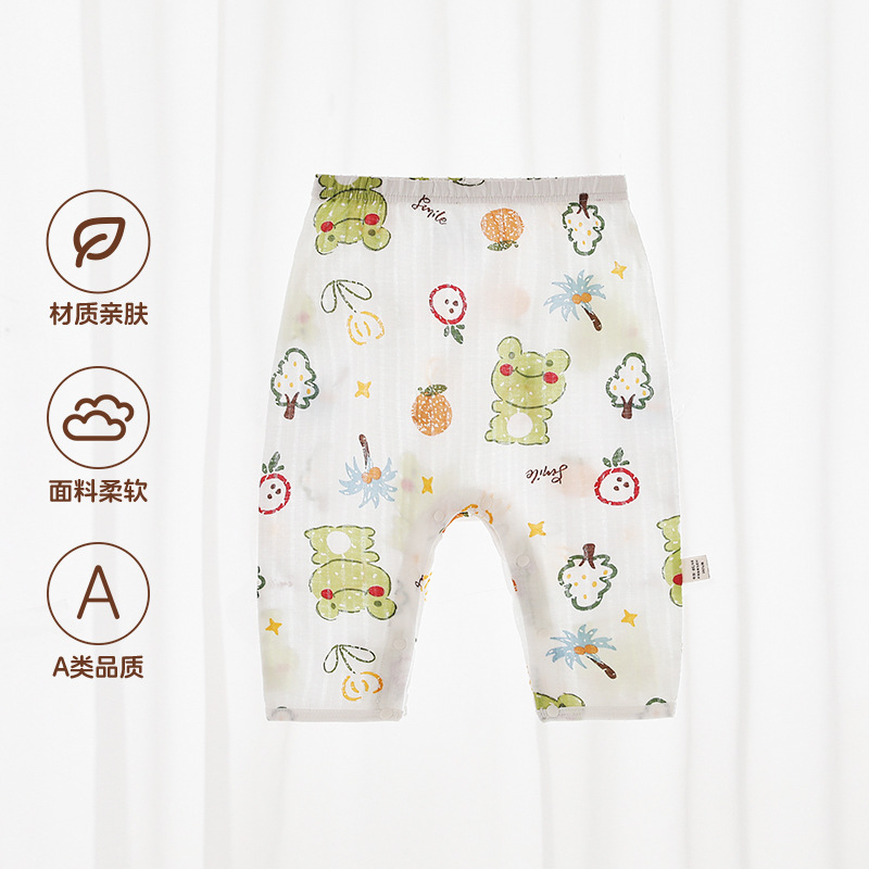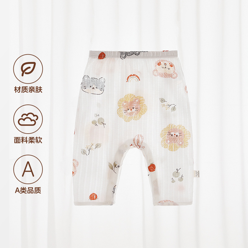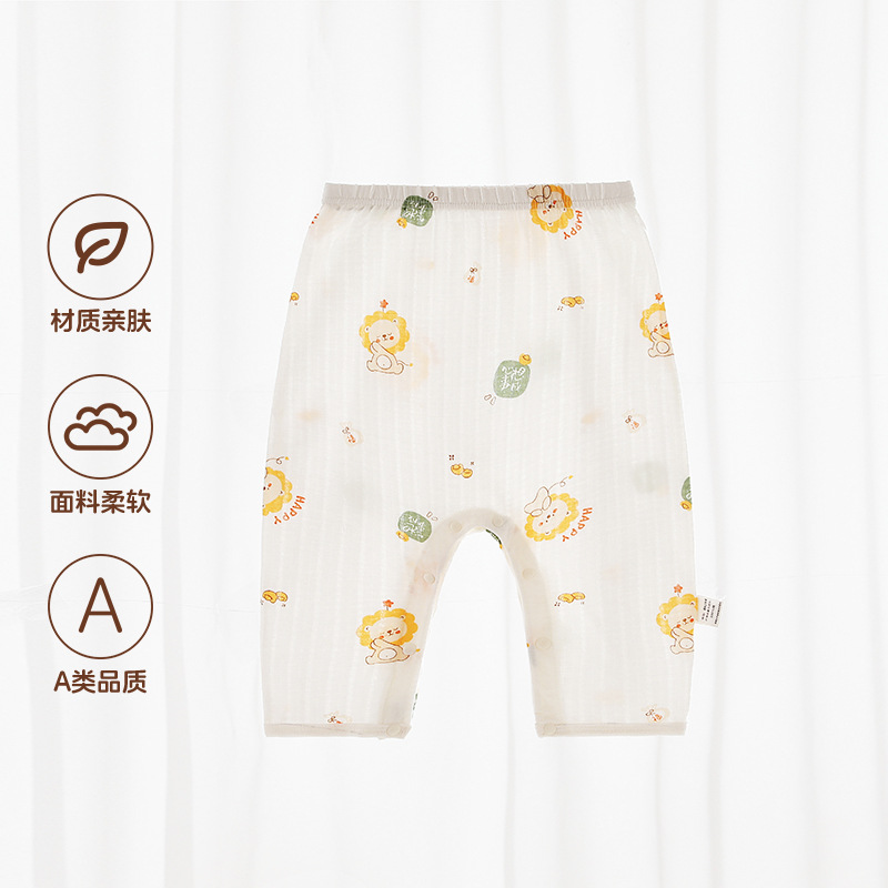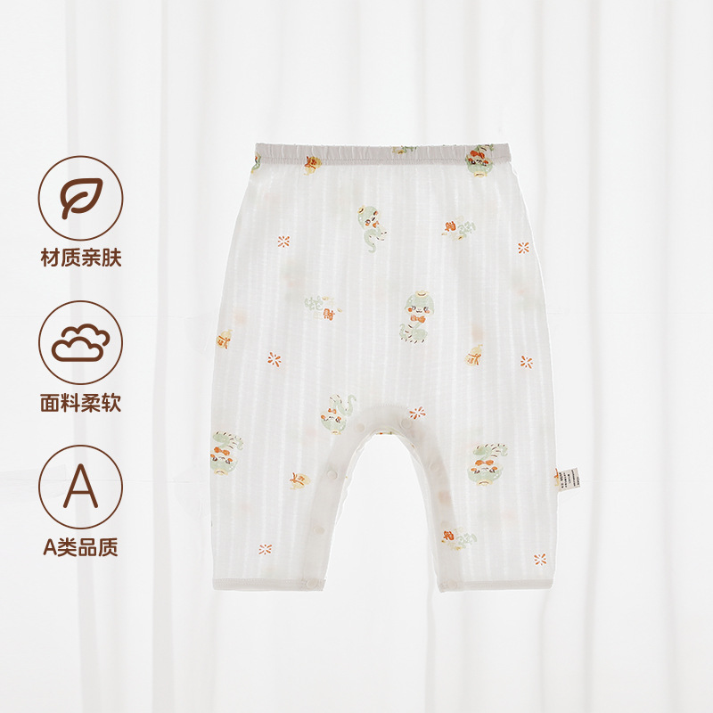 Beileyi 스냅 버튼 아기 바지 여름 얇은 가랑이없는 통기성 아기 바지 순수 코튼 숨겨진 버튼 무료 모기 방지 바지스토어 가기