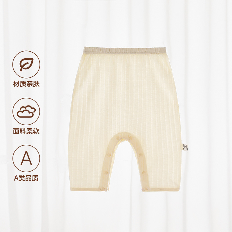 Beileyi 스냅 버튼 아기 바지 여름 얇은 가랑이없는 통기성 아기 바지 순수 코튼 숨겨진 버튼 무료 모기 방지 바지