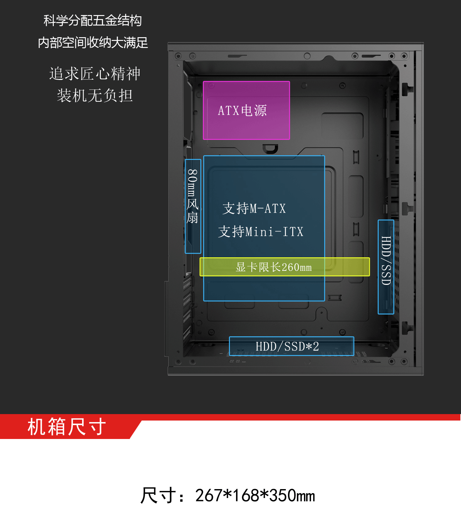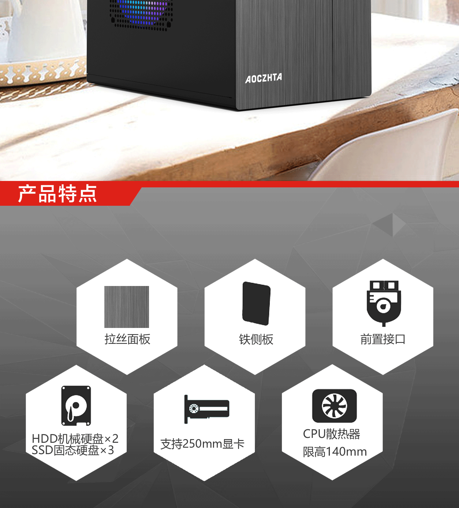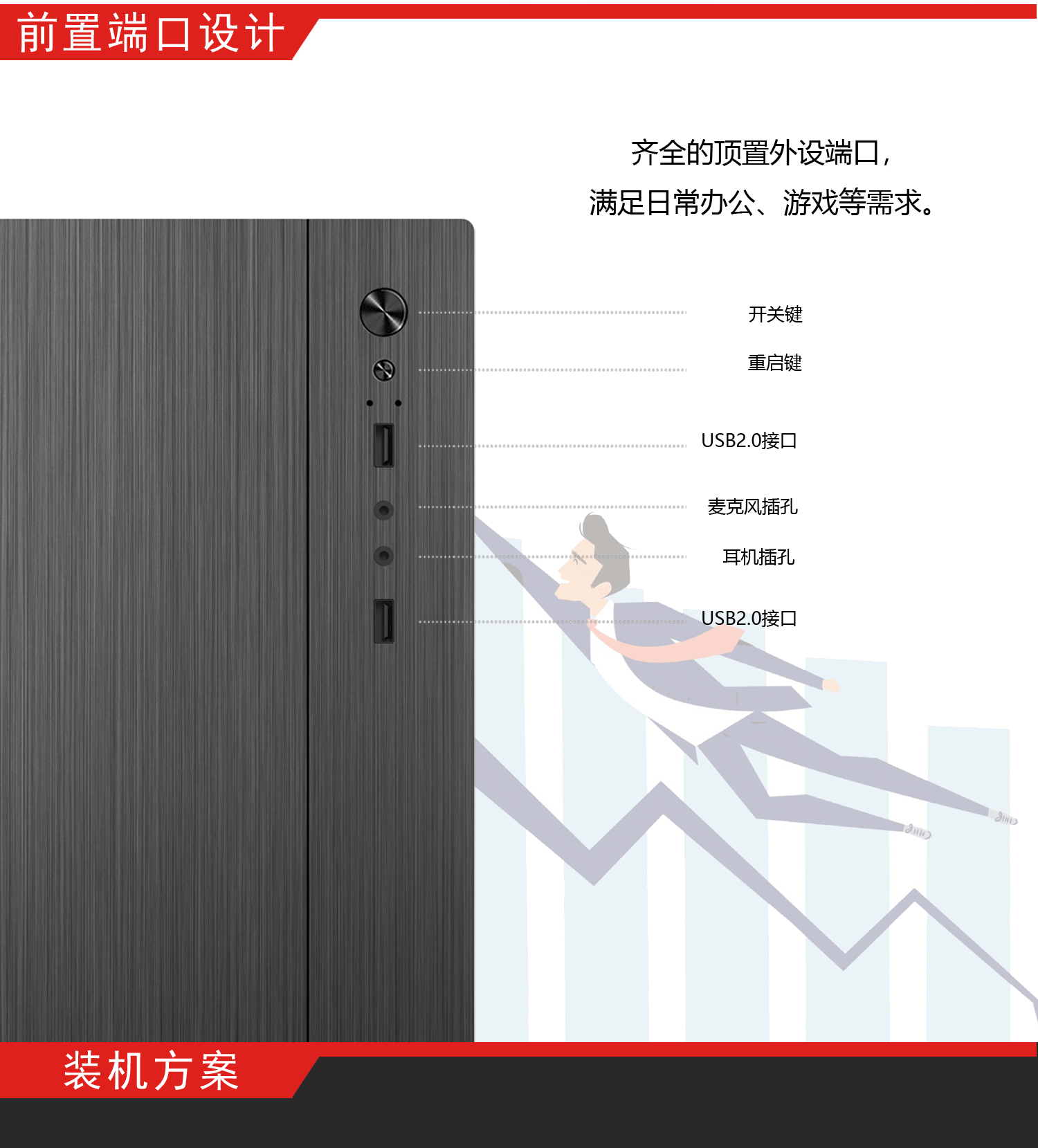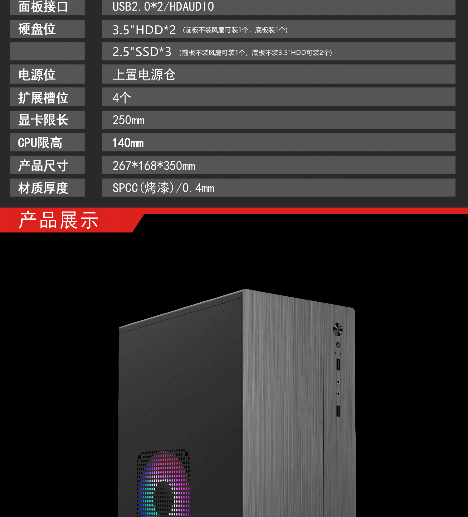 TPV Zhongta 작은 상자 USB2.0 비즈니스 홈 오피스 와이어 드로잉 블랙 데스크톱 데스크톱 컴퓨터 섀시