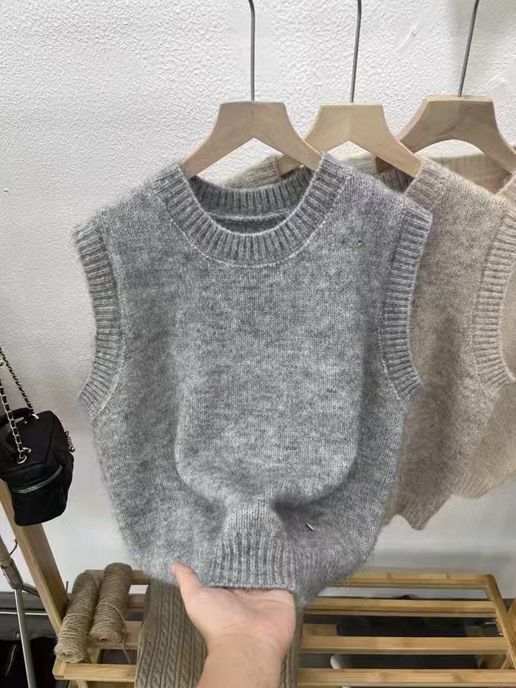 솔리드 컬러 봄, 가을 새로운 풀오버 니트 스웨터 조끼 여성 겨울 겉옷 셔츠 레이어링 민소매 짧은 한국 스타일 조끼스토어 가기
