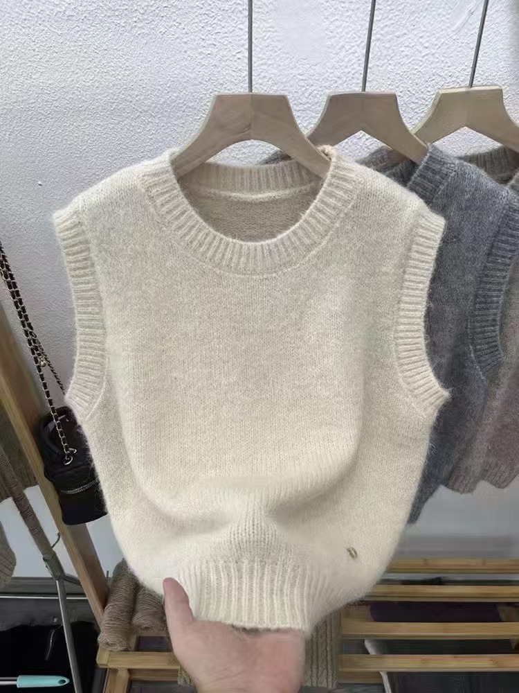 솔리드 컬러 봄, 가을 새로운 풀오버 니트 스웨터 조끼 여성 겨울 겉옷 셔츠 레이어링 민소매 짧은 한국 스타일 조끼