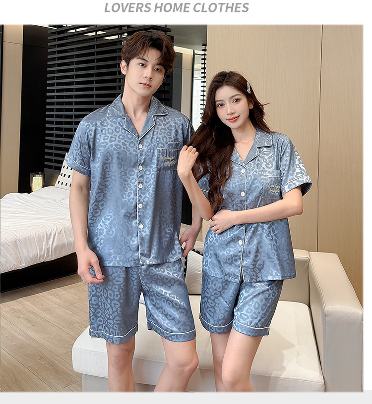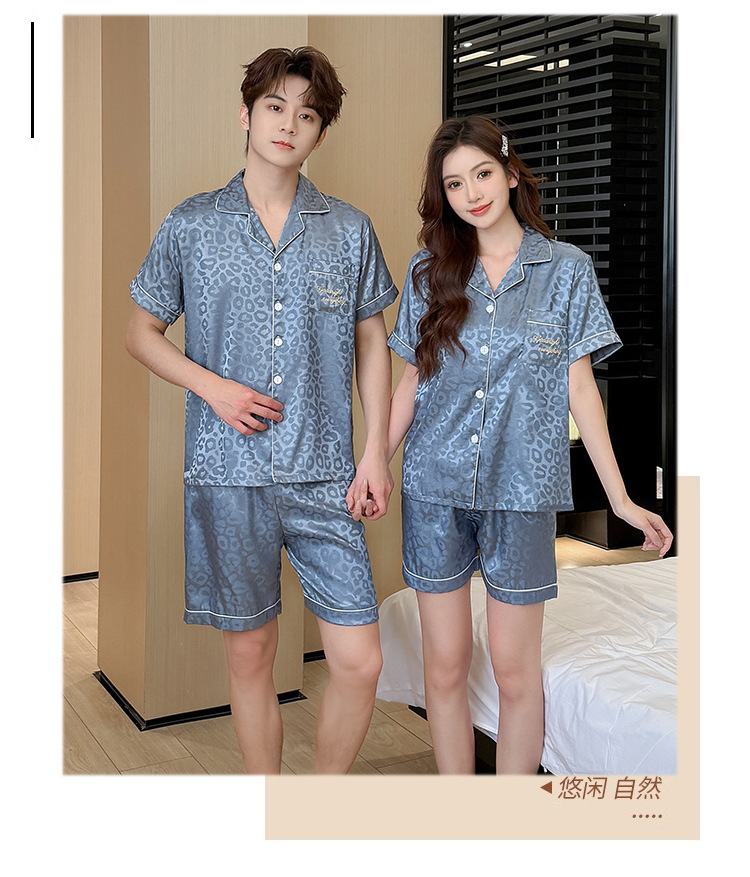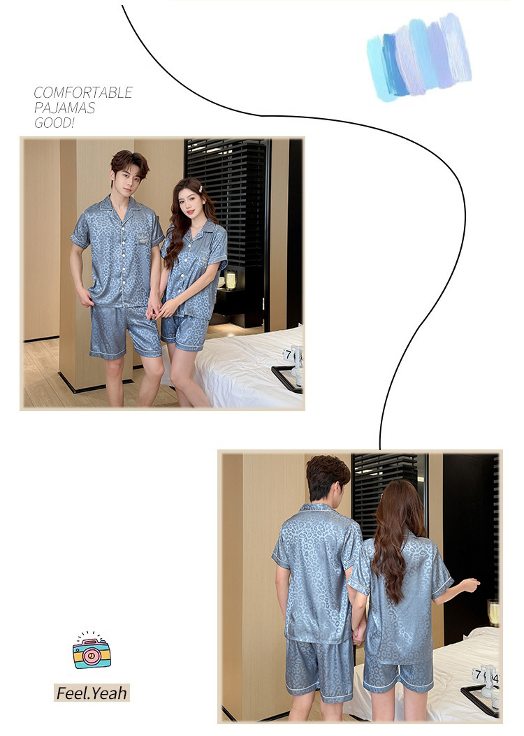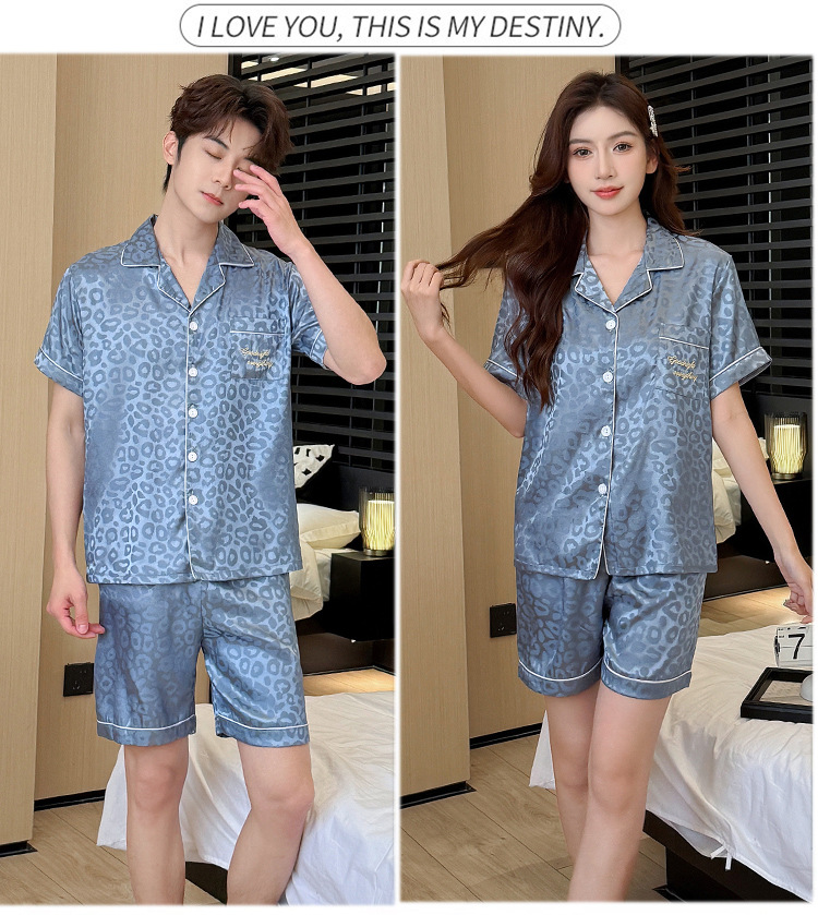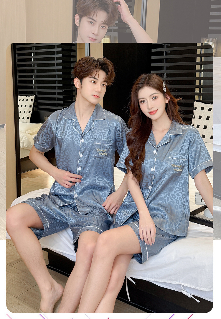 2026년 신상 커플 잠옷 여성용 여름 아이스 실크 반팔 귀여운 캐주얼 대형 사이즈 남성용 실크 홈웨어 세트스토어 가기