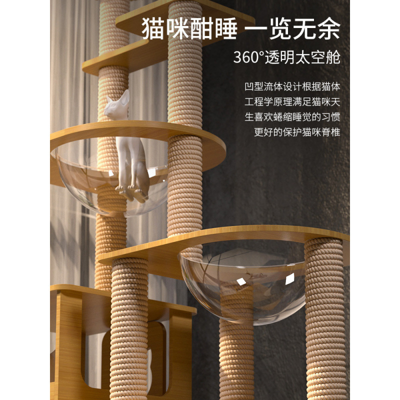 고양이 클라이밍 프레임, 고양이 둥지, 고양이 트리, 일체형 고양이 클라이밍 프레임, 소형, 공간 절약형, 가정용 우주 캡슐, 원목 관찰 플랫폼 및 계단스토어 가기