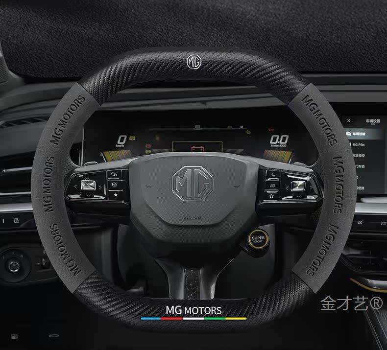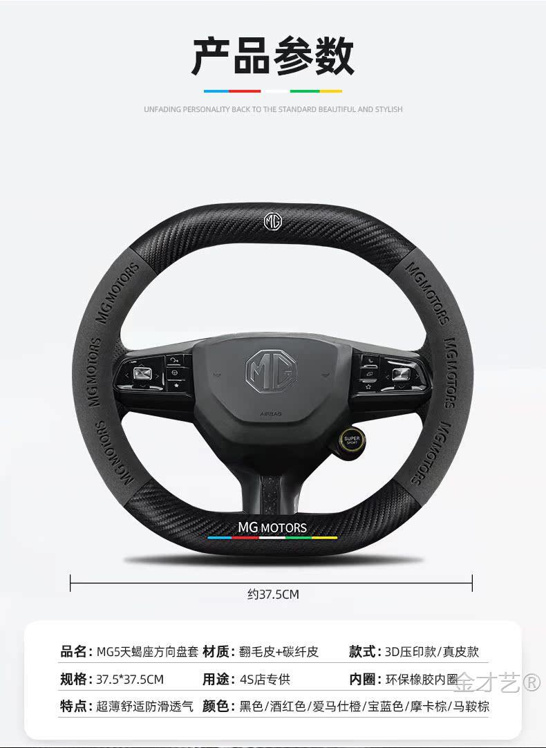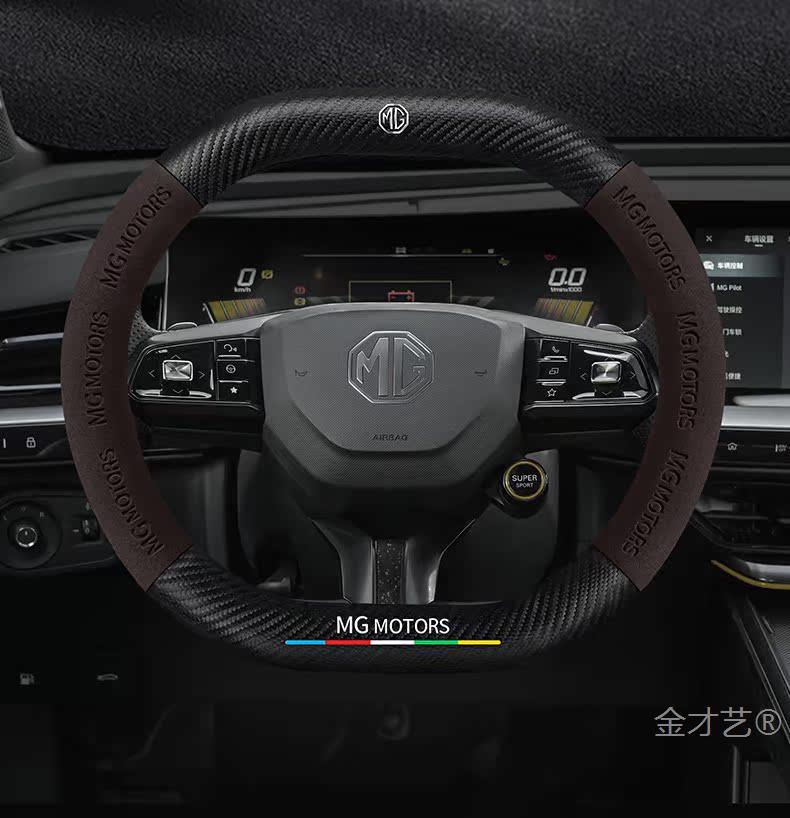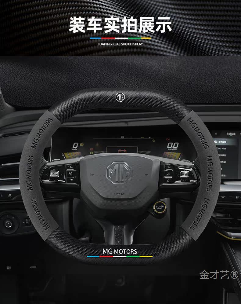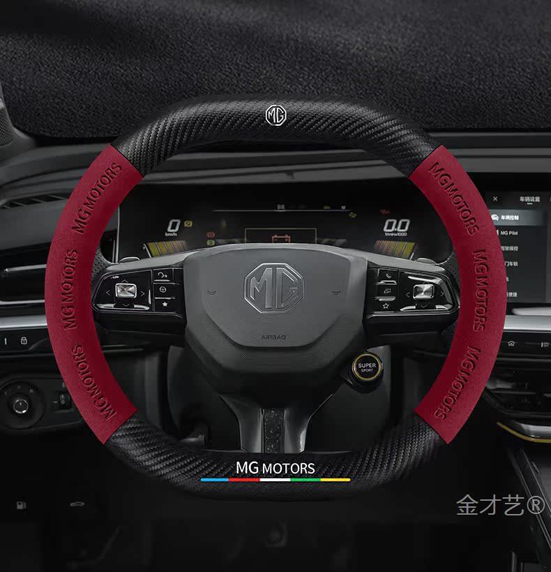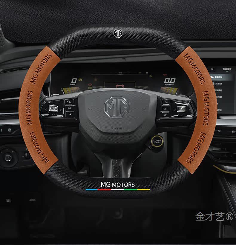 MG mg5 전갈자리 스티어링 휠 커버 22 초박형 가죽 스웨이드 탄소 섬유 손 땀 방지 자동차 핸들 커버스토어 가기