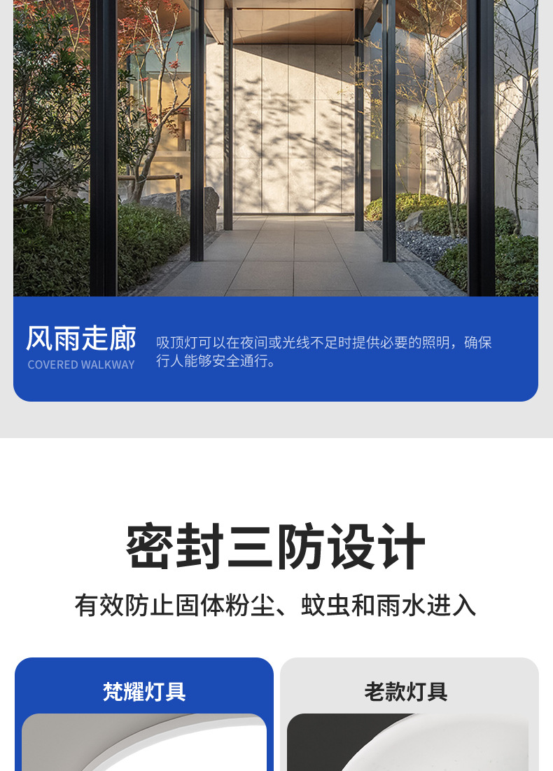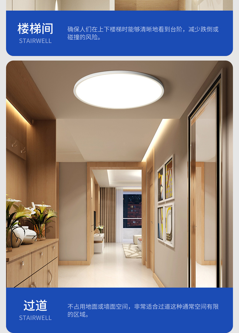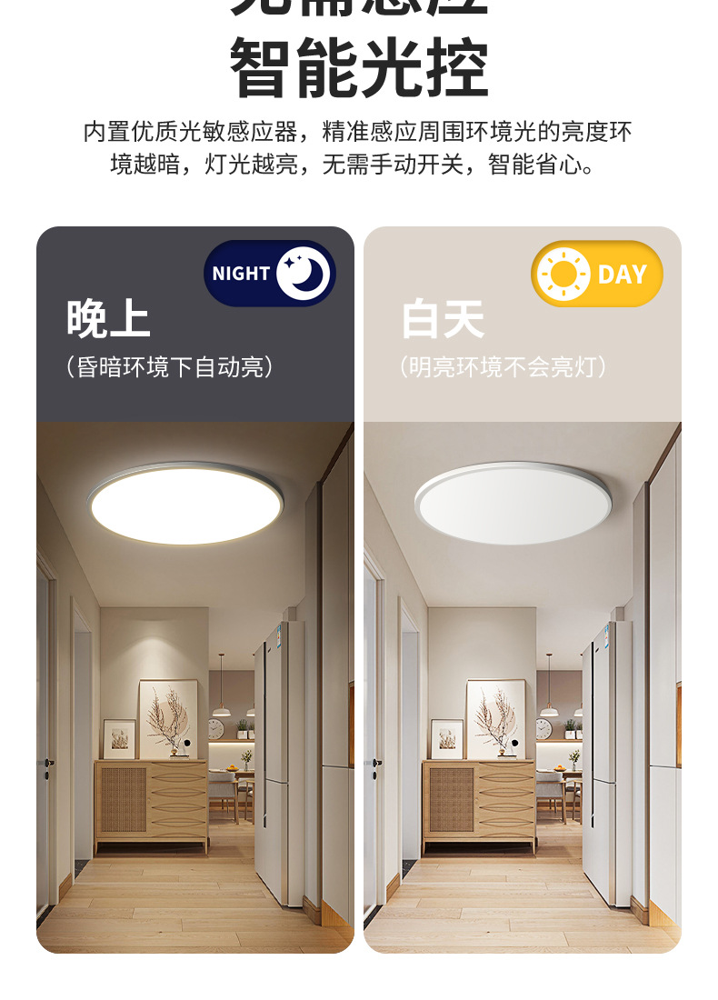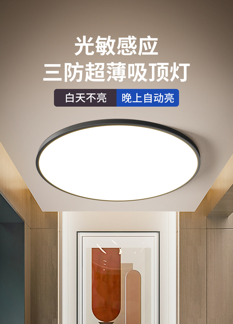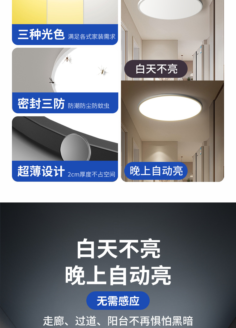 지능형 순수 조명 제어 LED 천장 조명, 통로용 3중 감지 센서, 밤에는 자동으로 켜지고 낮에는 자동으로 꺼집니다.