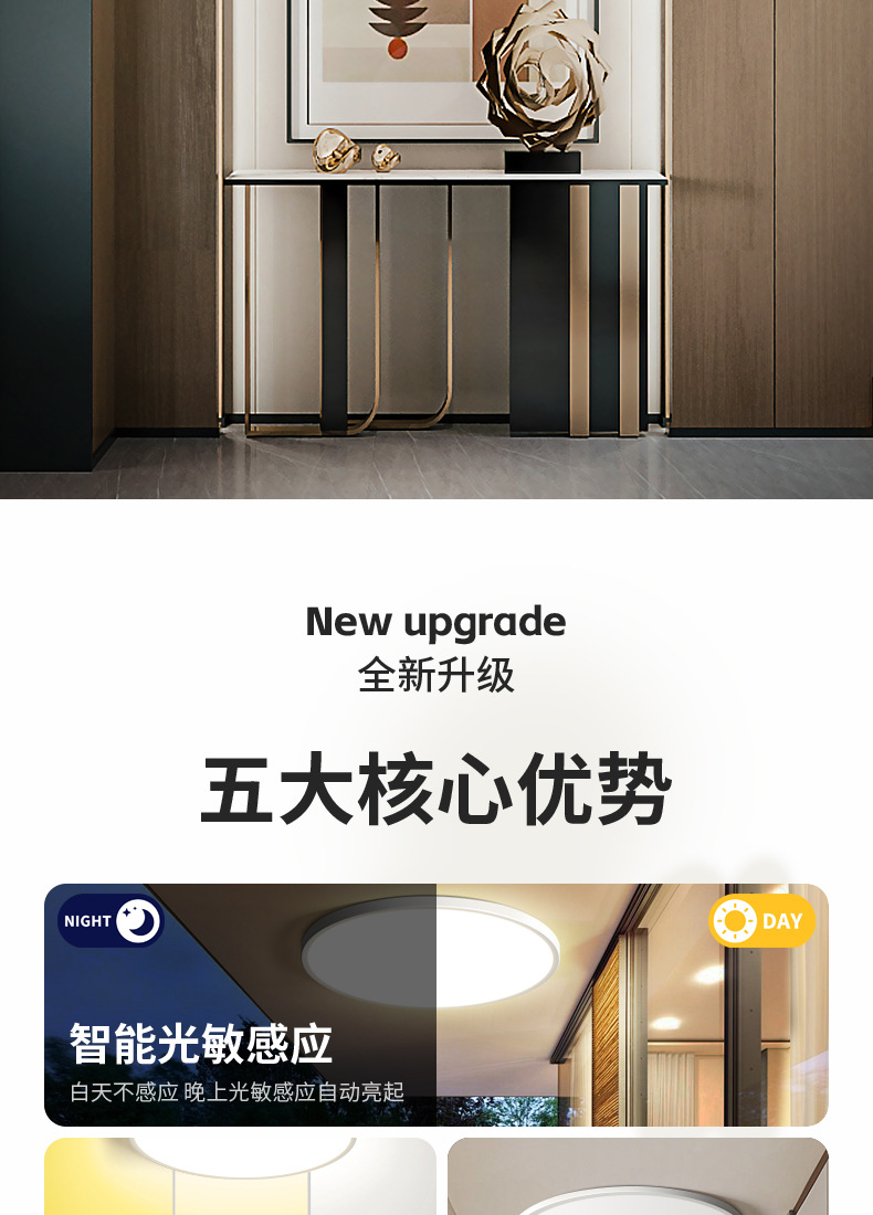 지능형 순수 조명 제어 LED 천장 조명, 통로용 3중 감지 센서, 밤에는 자동으로 켜지고 낮에는 자동으로 꺼집니다.스토어 가기