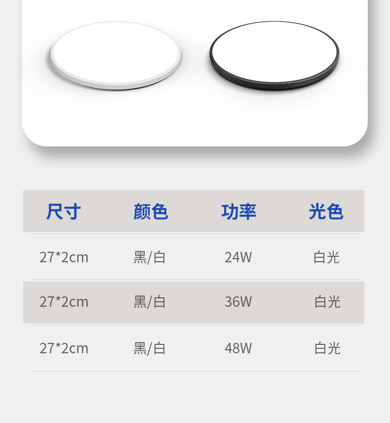 • 초박형 3중 방지 모델 - 30cm - 36W 백색광