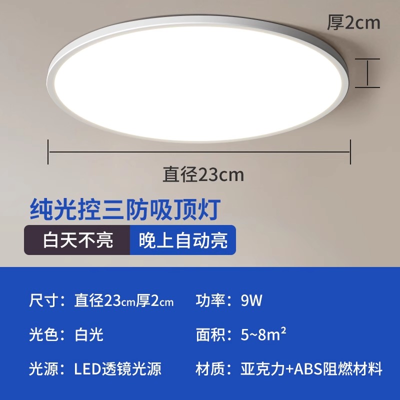 • 초박형 3중 방지 모델 - 23cm - 9W 백색광