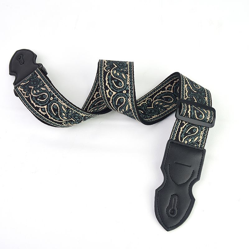 포크 기타 스트랩 일렉트릭 기타베이스 스트랩 자수 두꺼운 가죽 맞춤형 폴리에스테르 인쇄 확대 스트랩