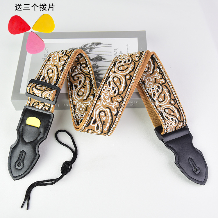 포크 기타 스트랩 일렉트릭 기타베이스 스트랩 자수 두꺼운 가죽 맞춤형 폴리에스테르 인쇄 확대 스트랩스토어 가기