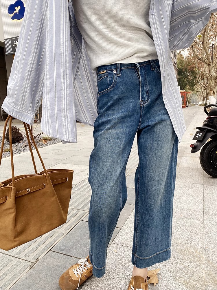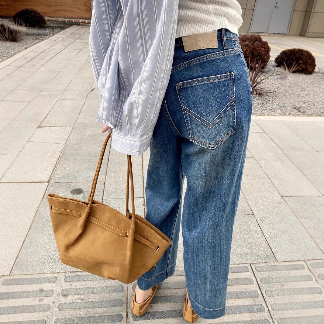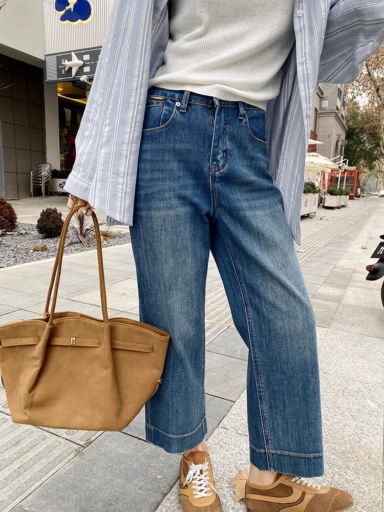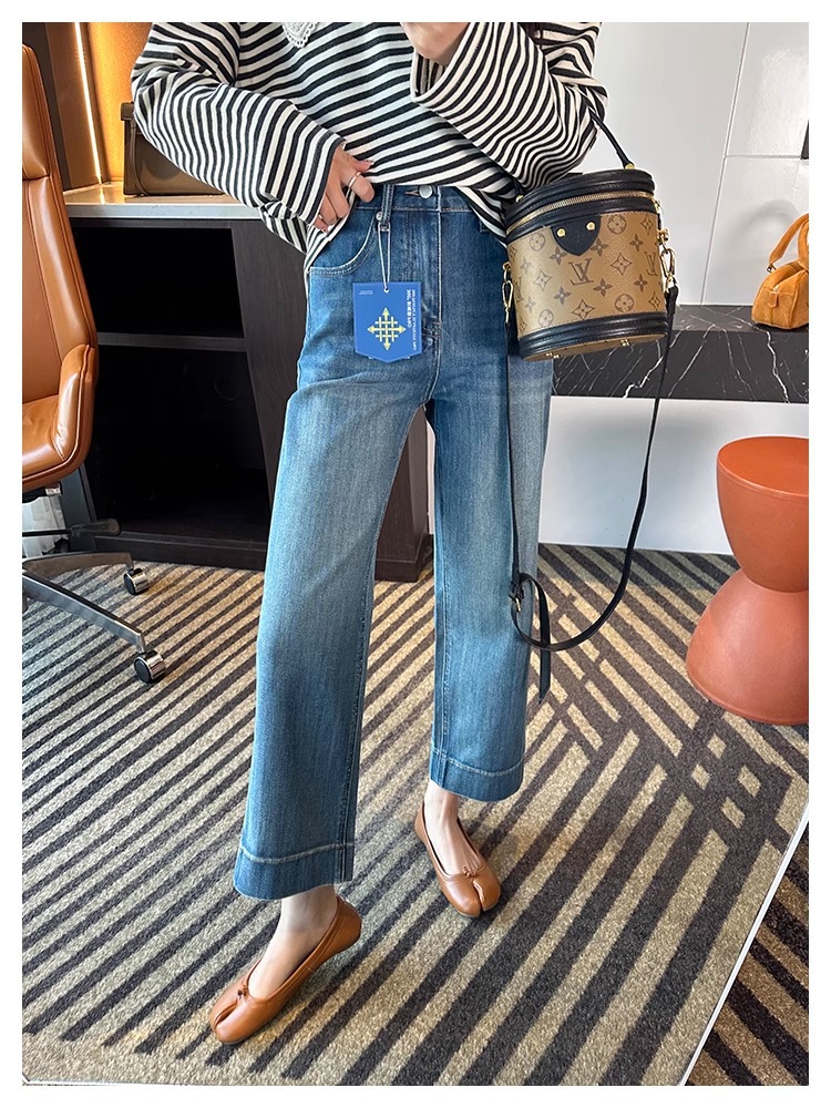 네 방향 스트레치 하이웨이스트 미니 사이즈 9부 데님 팬츠 여성용 초봄 2025 신상 스모크 튜브 팬츠 봄 가을 키높이 효과스토어 가기