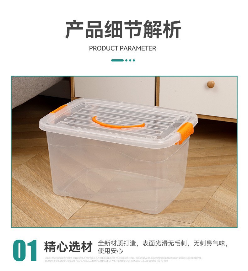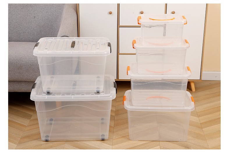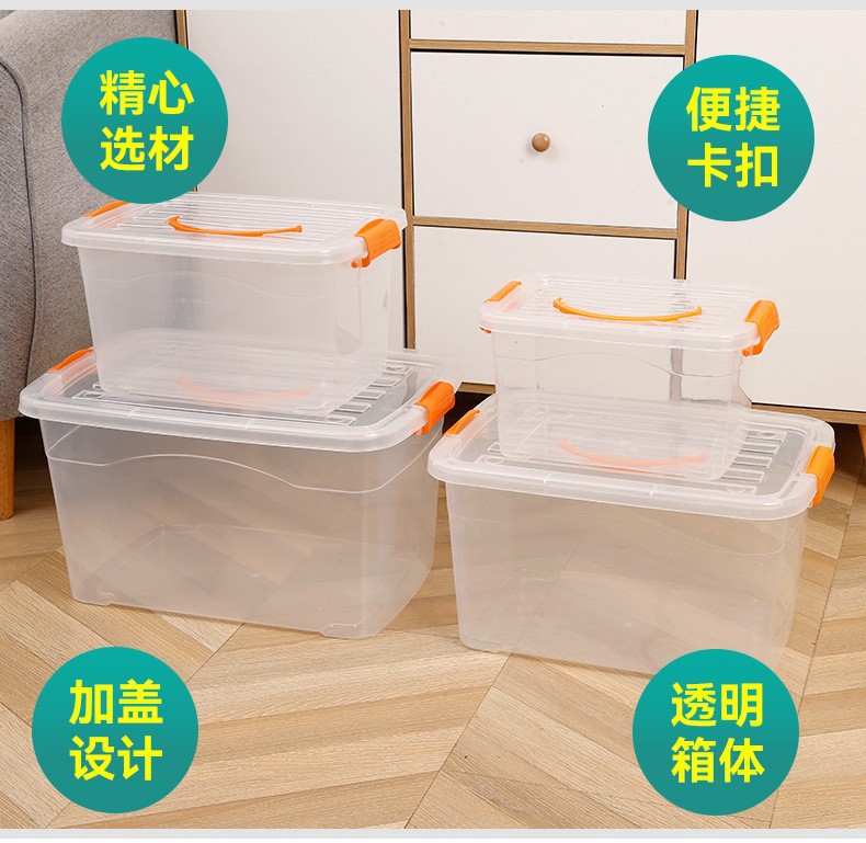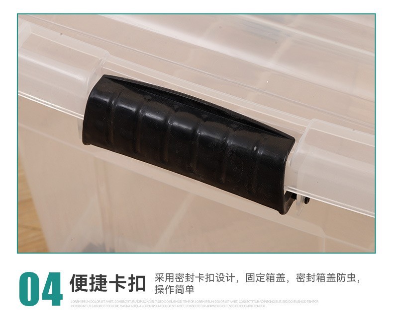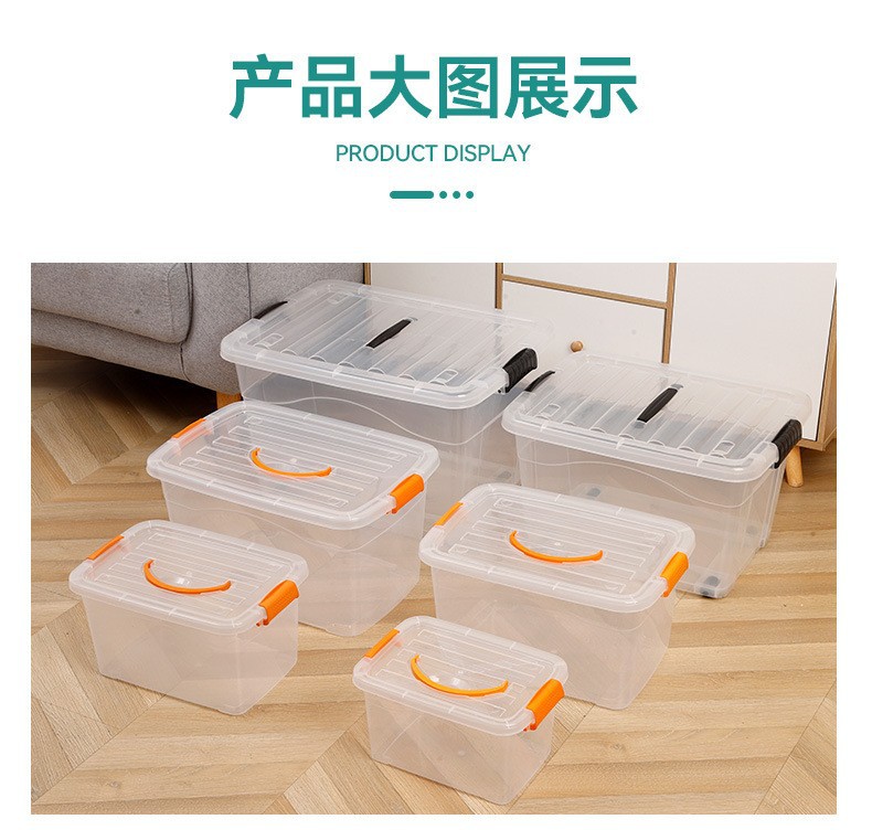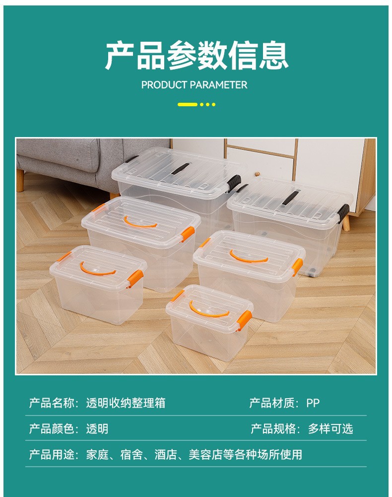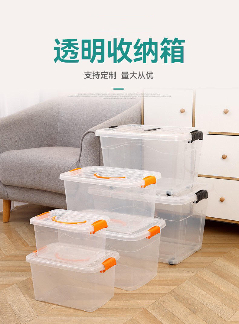 플라스틱 투명 보관 상자 대용량 휴대용 보관 상자 가정용 의류 휠 보관 상자 선물 인쇄 가능