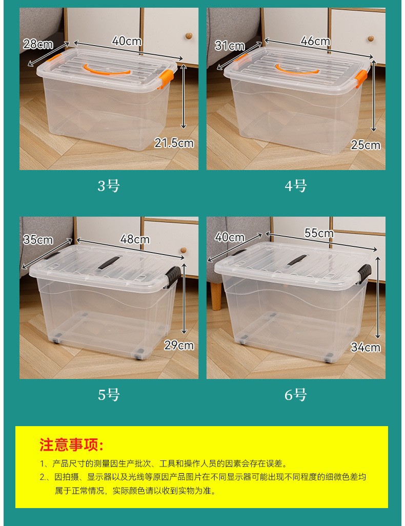 플라스틱 투명 보관 상자 대용량 휴대용 보관 상자 가정용 의류 휠 보관 상자 선물 인쇄 가능스토어 가기