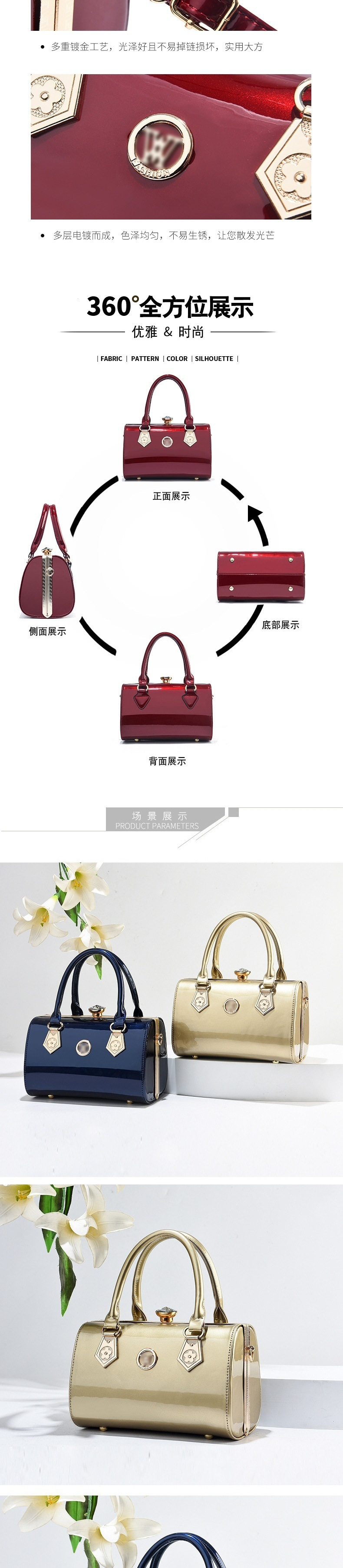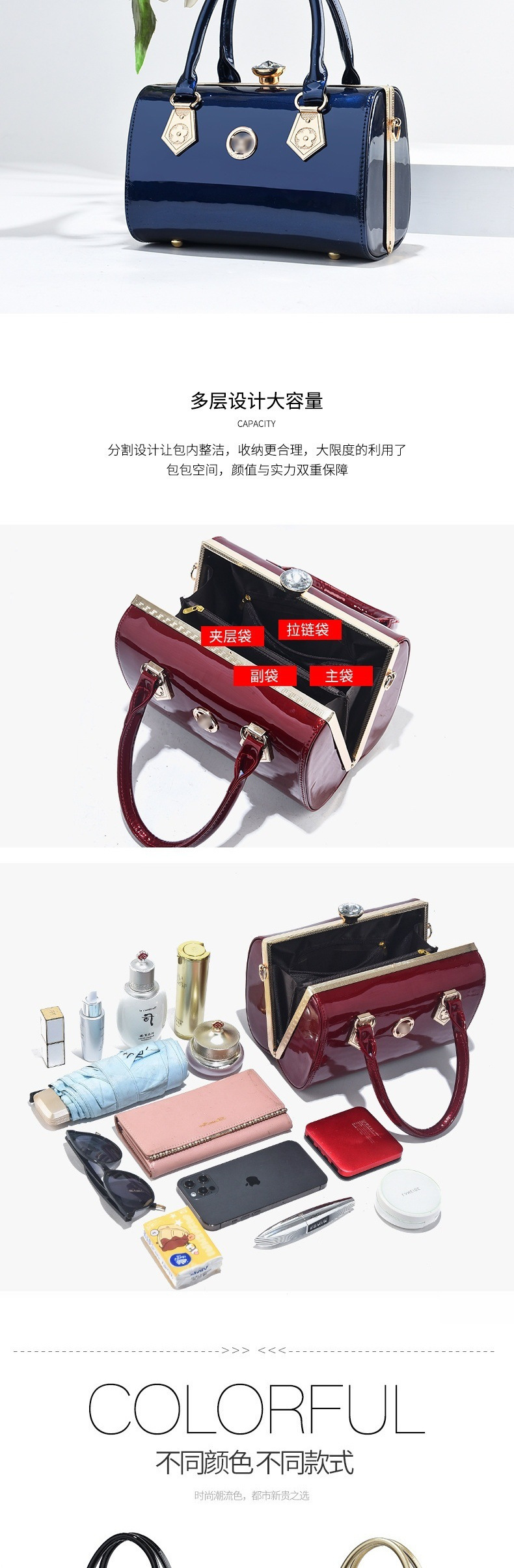 고급 특허 가죽 반짝이는 얼굴 크로스 바디 백 2023 대용량 핸드백 고급 고급 고급 외국 스타일 숄더 백