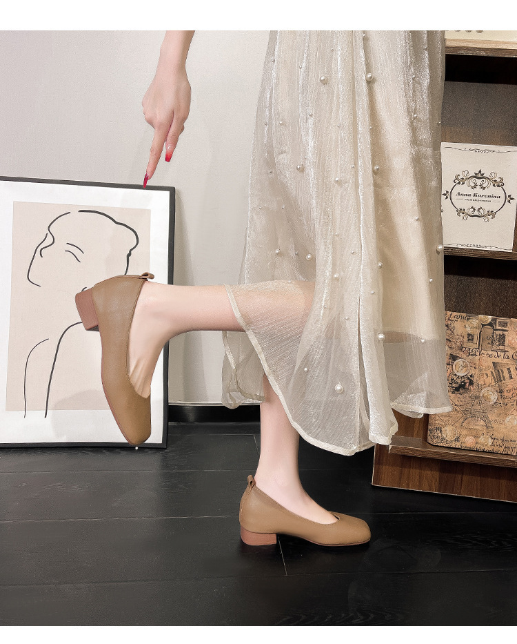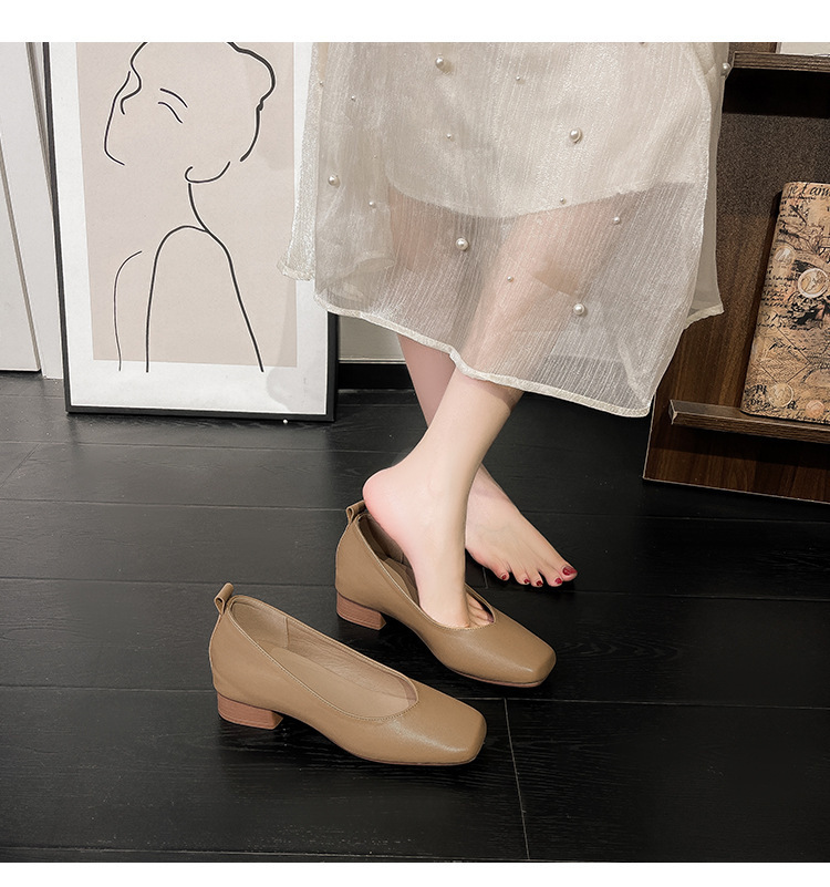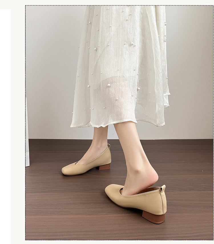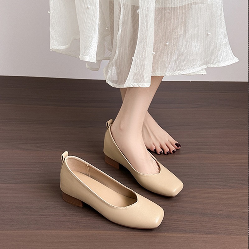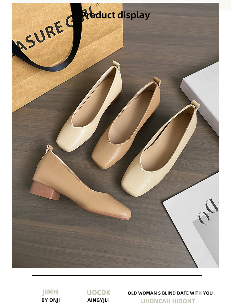 양가죽 버전_여성용 여름용 부드러운 밑창 신발, 프렌치 스퀘어 토 펌프스, 작은 사이즈, 내부 높이 6cm, 할머니 신발스토어 가기