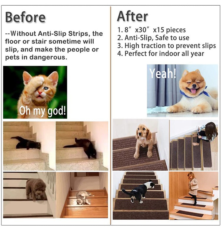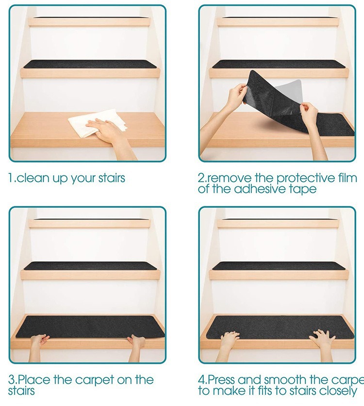 공장 계단 매트 접착제가없는 자체 접착 홈 계단 매트 음소거 미끄럼 방지 스텝 매트 플랫폼 매트 도매스토어 가기