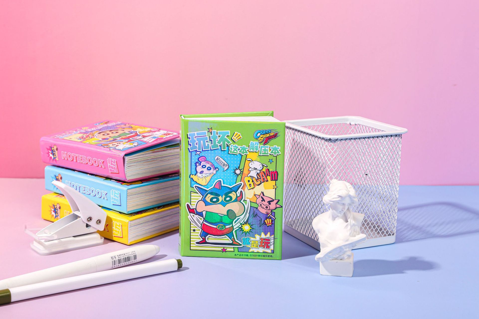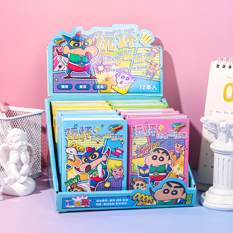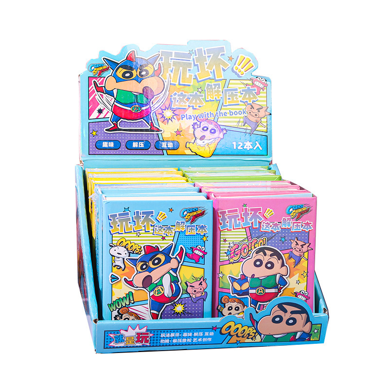 Maihe 정품 크레용 신짱이 이 책을 가지고 노는 창의적인 만화 학생 휴대용 포켓 게임 일기